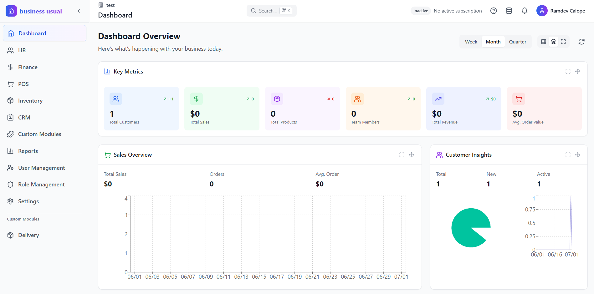 This led to the vision of creating a fully customizable ERP system that could adapt to any business model - a SaaS platform that democratizes enterprise-level business management tools.