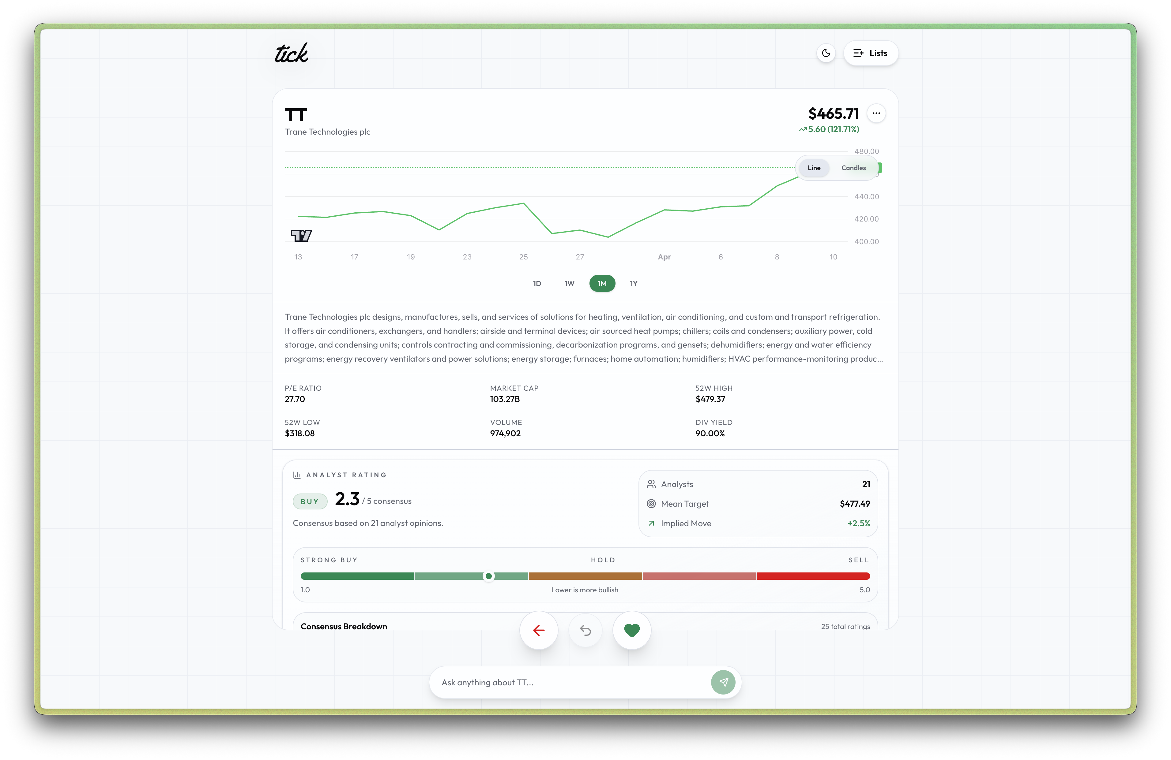 I built Tick with Next.js and React as a stock discovery app that surfaces new ideas, summarizes key information quickly, and gives users helpful context like analyst ratings, sentiment, and bull/bear takeaways all in one place. One of the biggest challenges was making the app feel simple without making it shallow. I wanted it to be fast and approachable for someone exploring new stocks, while still giving enough information to make that discovery meaningful. Through this project, I learned a lot about designing for clarity, combining market data with AI-generated summaries, and building a product that solves a problem I genuinely faced myself.