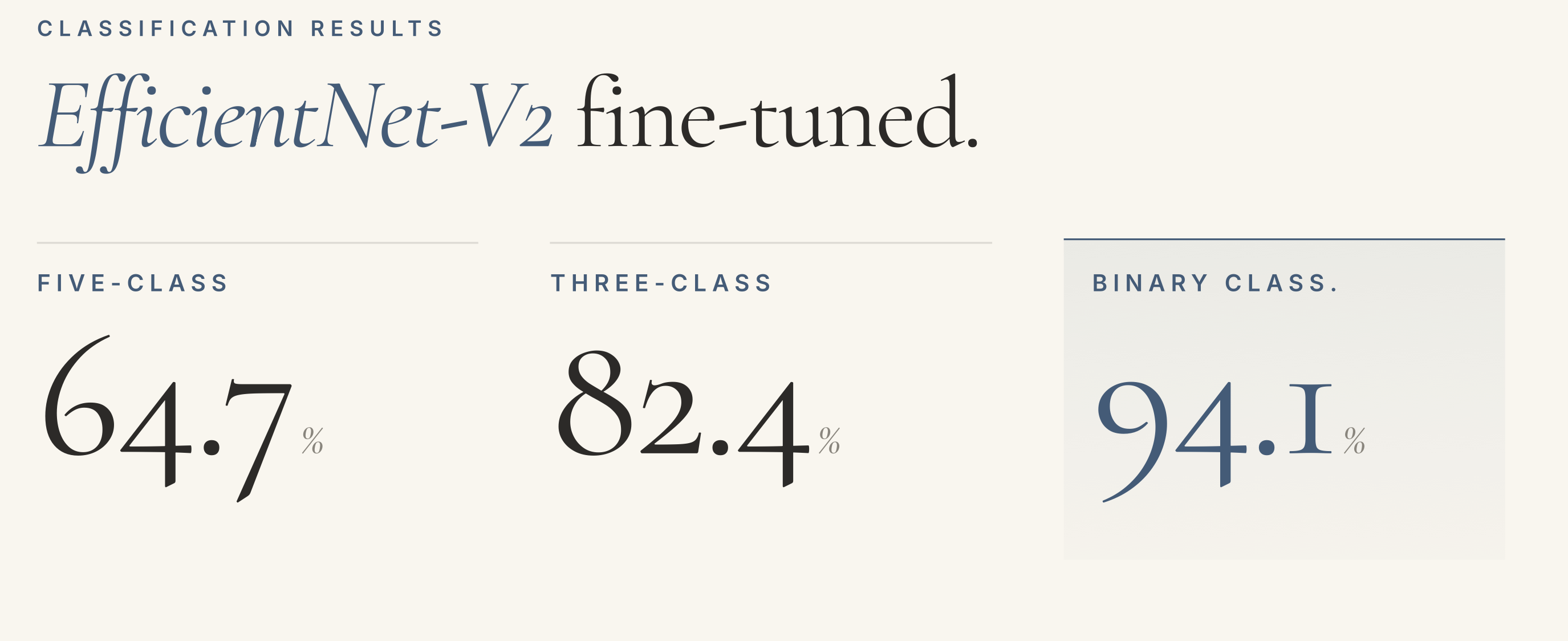 - 82.4% macro-F1 on three-class