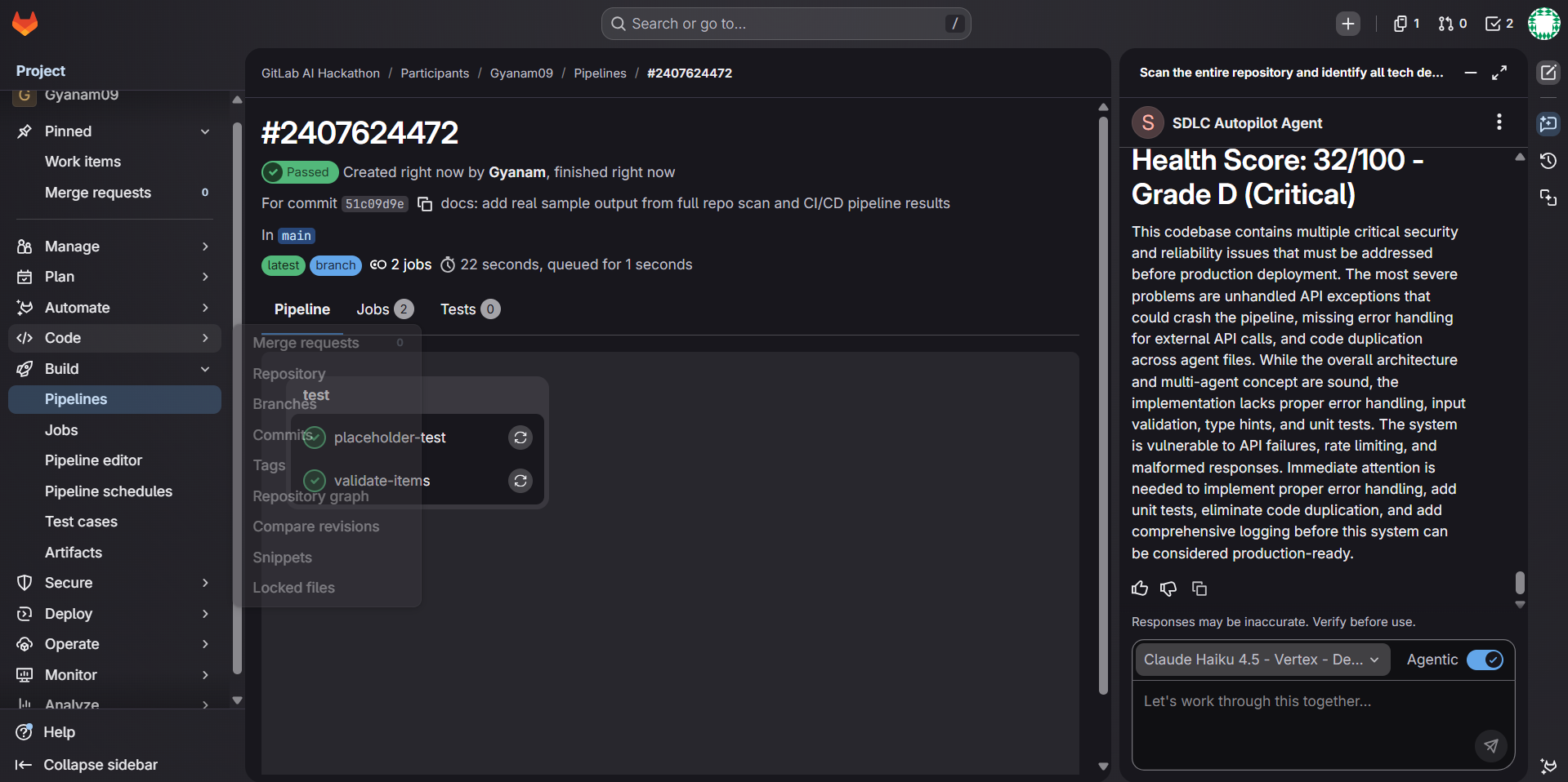 GROQ_API_KEYandGITLAB_TOKENwhich can only be set on projects where you have maintainer access. - Dual architecture — Building the same system in both GitLab-native AI YAML format and Python CI/CD format required careful design to keep both approaches consistent and functional.