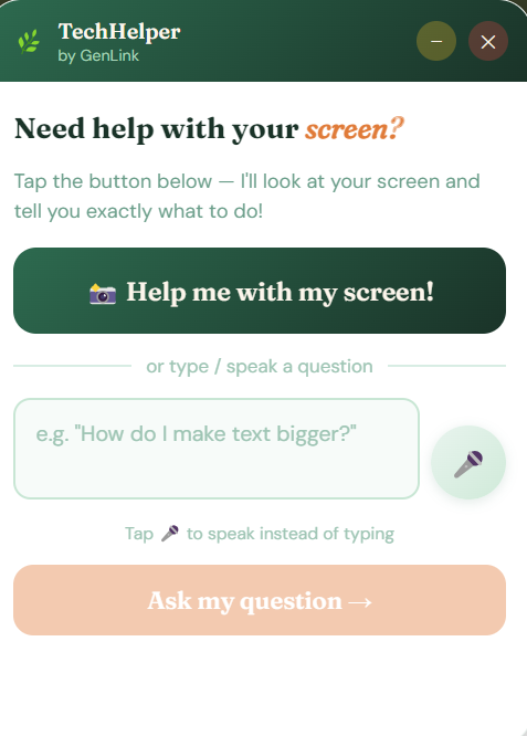 Instead of generic answers, TechHelper gives context-aware, step-by-step help based on what is actually on the user’s screen.