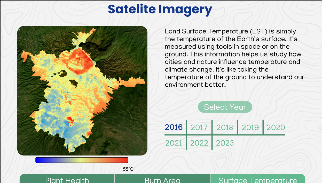 We are so proud because we have made a prototype for the app using one case of national park in Indonesia which is Bromo Tengger Semeru National Park, and we have shown the effect of Bromo national park’s forest fire through 3 parameters of NDVI,LST, and NBRI.