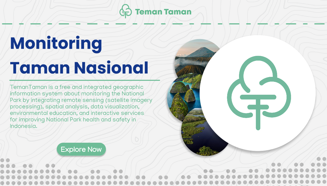 TemanTaman is a free and integrated geographic information system about monitoring the National Park by integrating remote sensing (satellite imagery processing), spatial analysis, data visualization, environmental education, and interactive services for improving National Park health and safety in Indonesia.