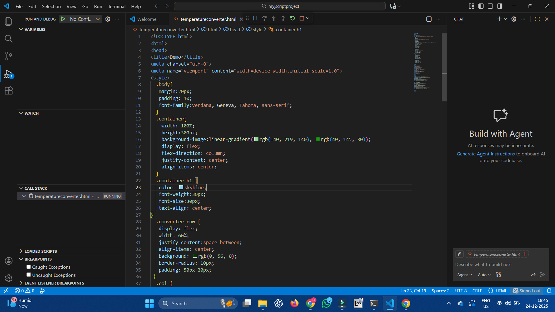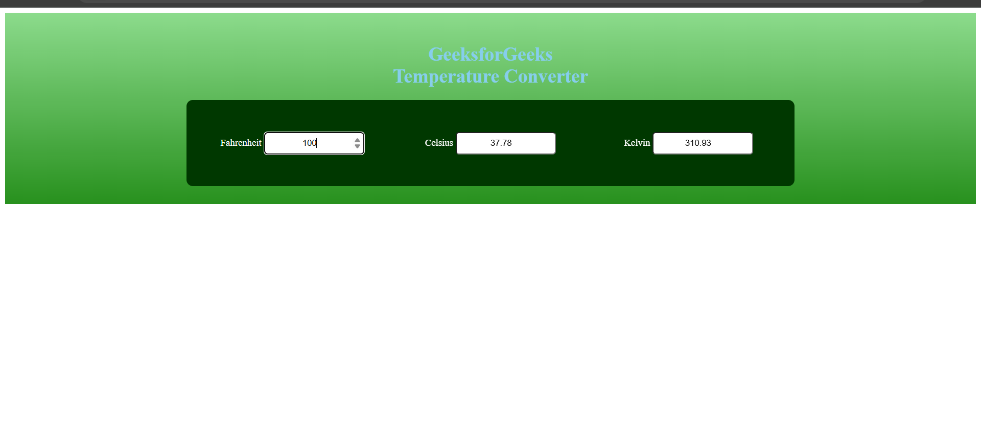 - Successfully built a fully functional Temperature Converter that accurately converts between Celsius, Fahrenheit, and Kelvin