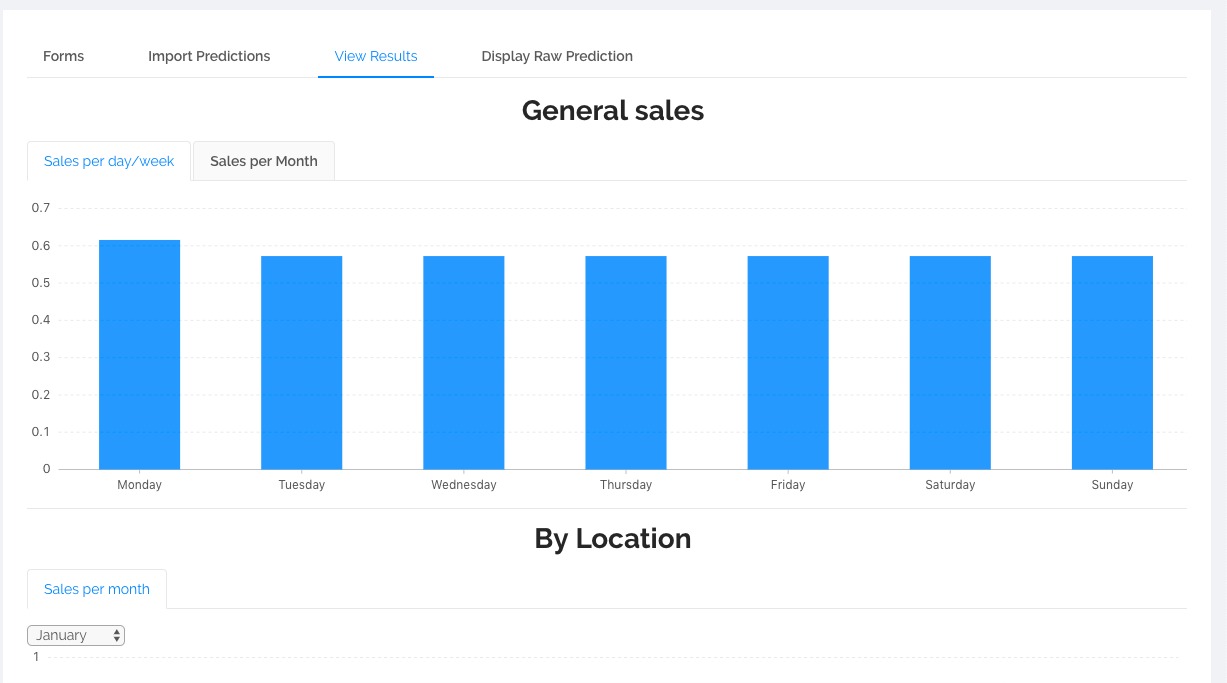 Our neural network iterates multiple times to learn by the historic data and with all the information clean is able to predict future sales quantities and displayed in a web UI showing the results in a friendly manner through graphics.