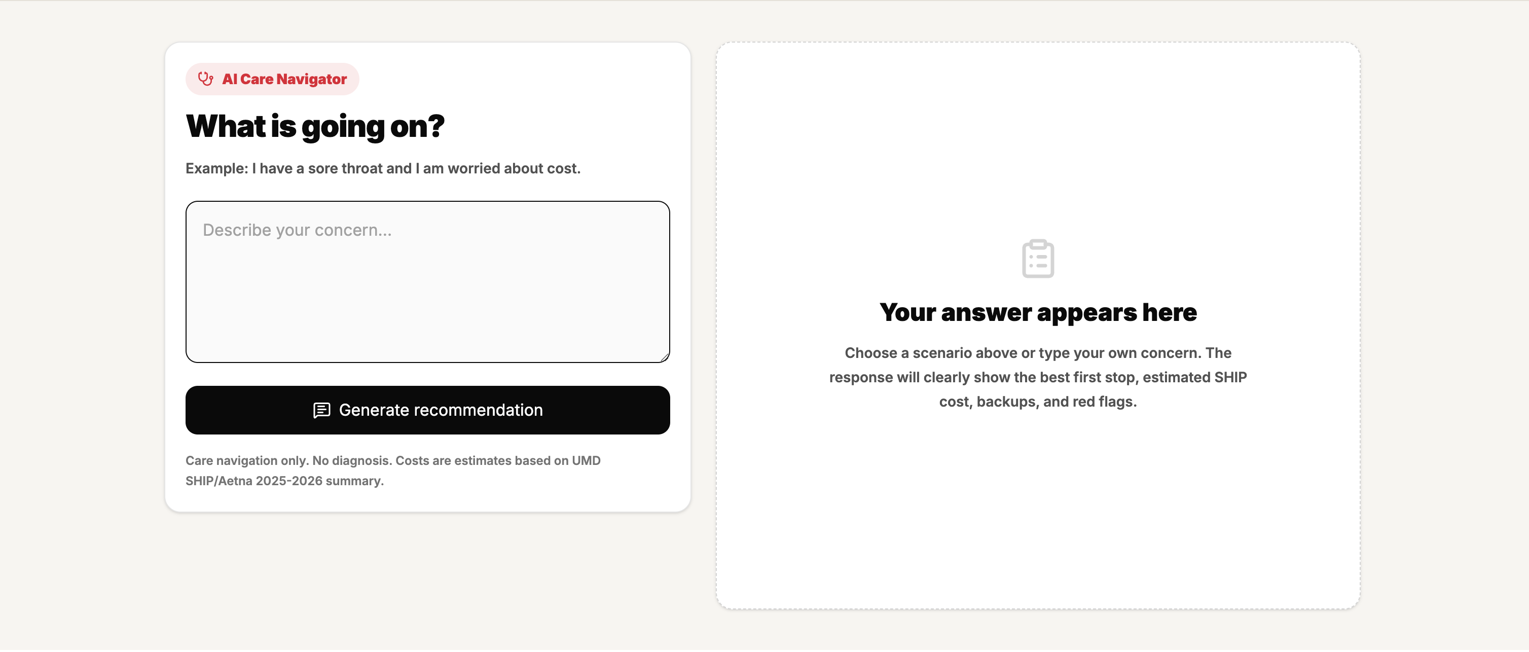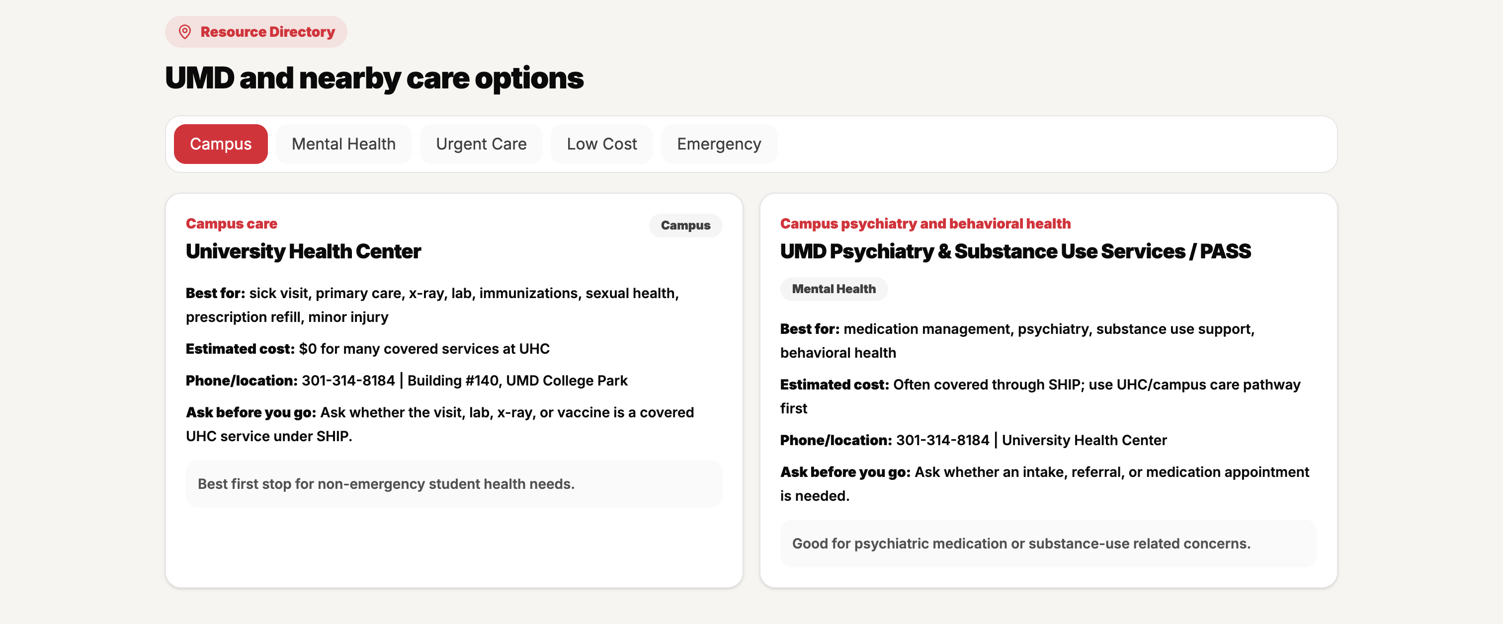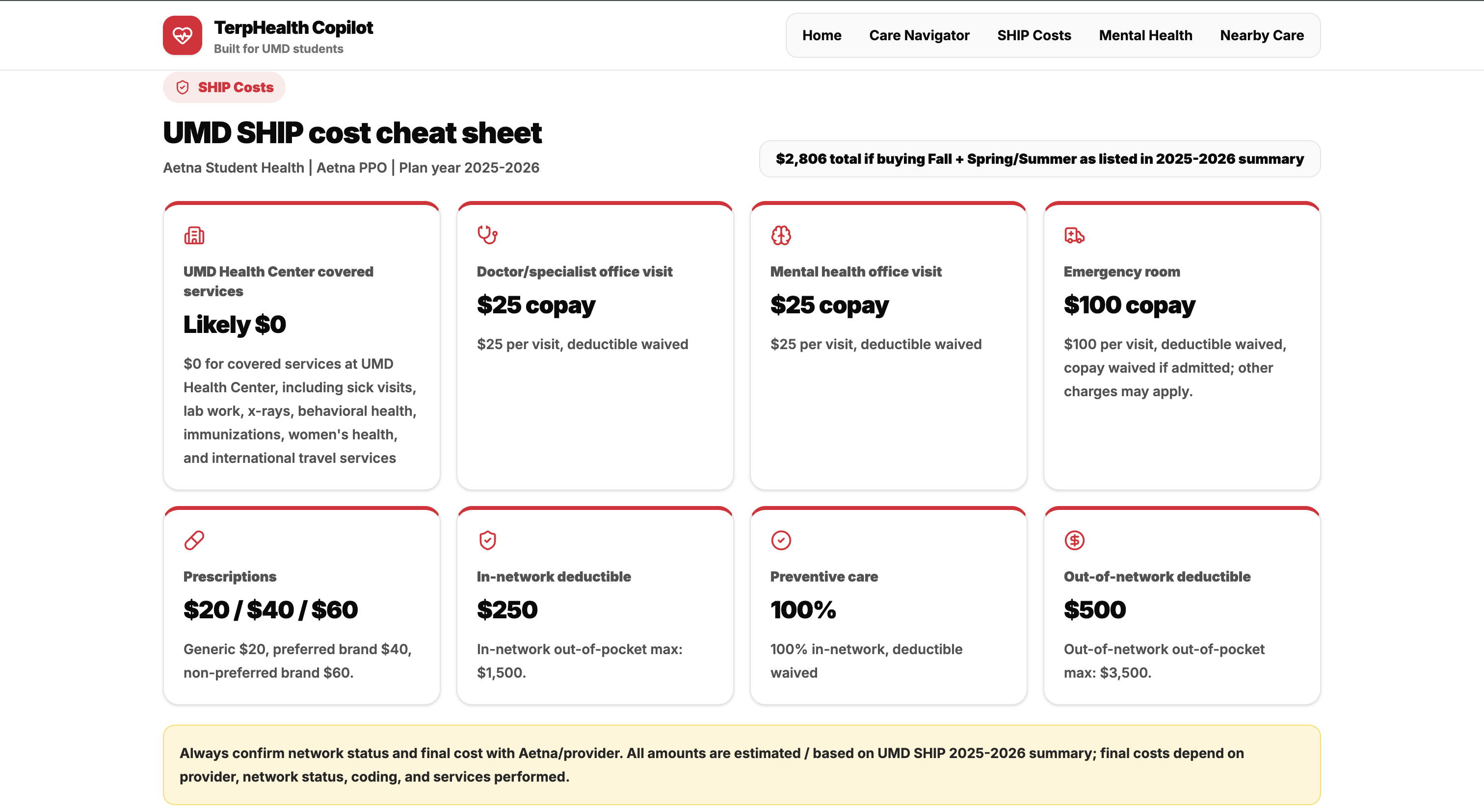 When I first came to the U.S., understanding UMD SHIP insurance was genuinely overwhelming. Even when I was sick, I struggled to figure out simple but important things like how much I’d pay for urgent care vs the ER, what my copay was, how to book appointments, and what campus resources were available. It often took days or even weeks of calls and searching for answers. That experience made me realize many students, especially international students, face the same confusion and stress. We built TerpHealth Copilot to make healthcare easier for all Terps by bringing costs, care options, and campus wellness resources into one simple AI-powered navigator.