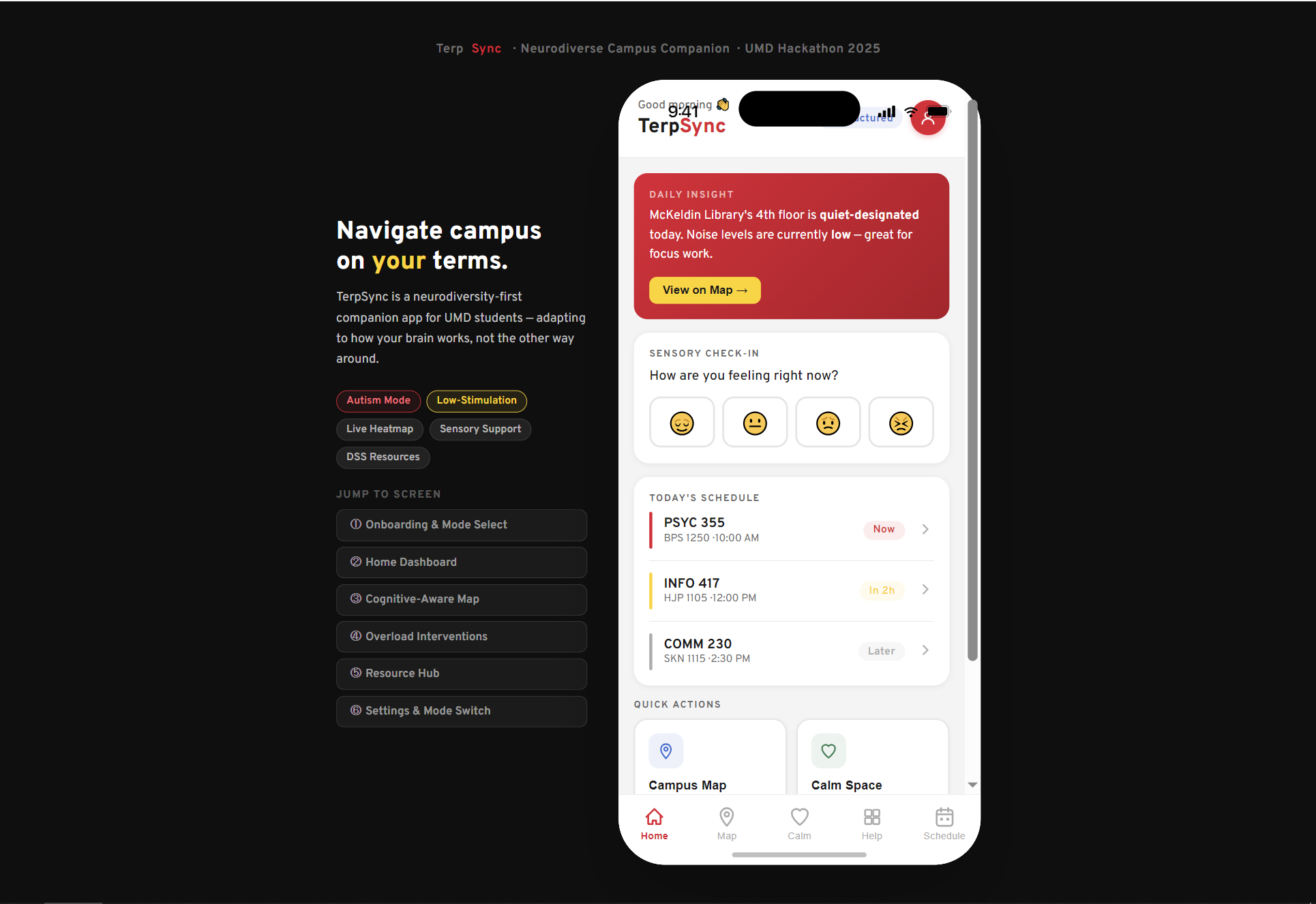TerpSync is a real-time cognitive support app that helps neurodivergent students: