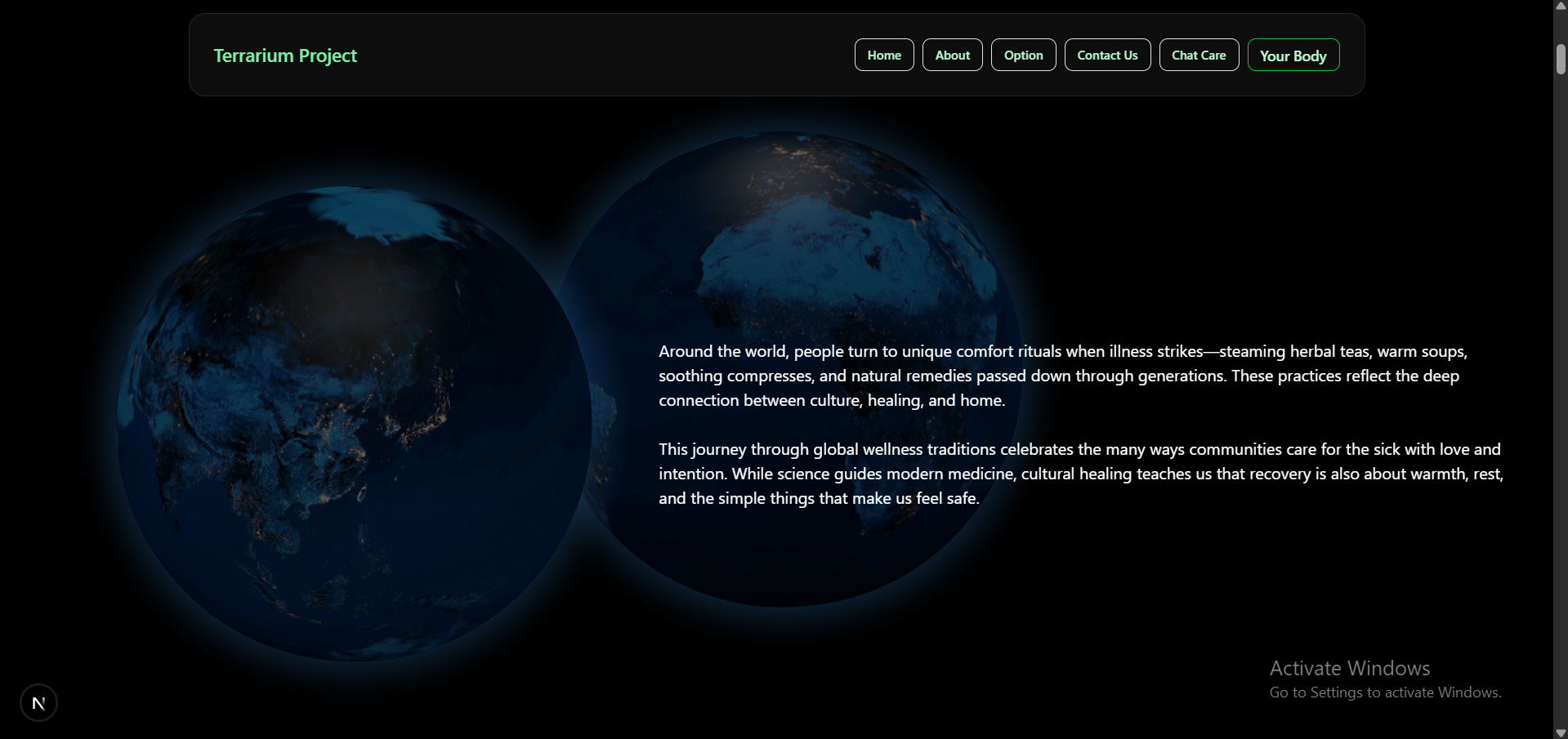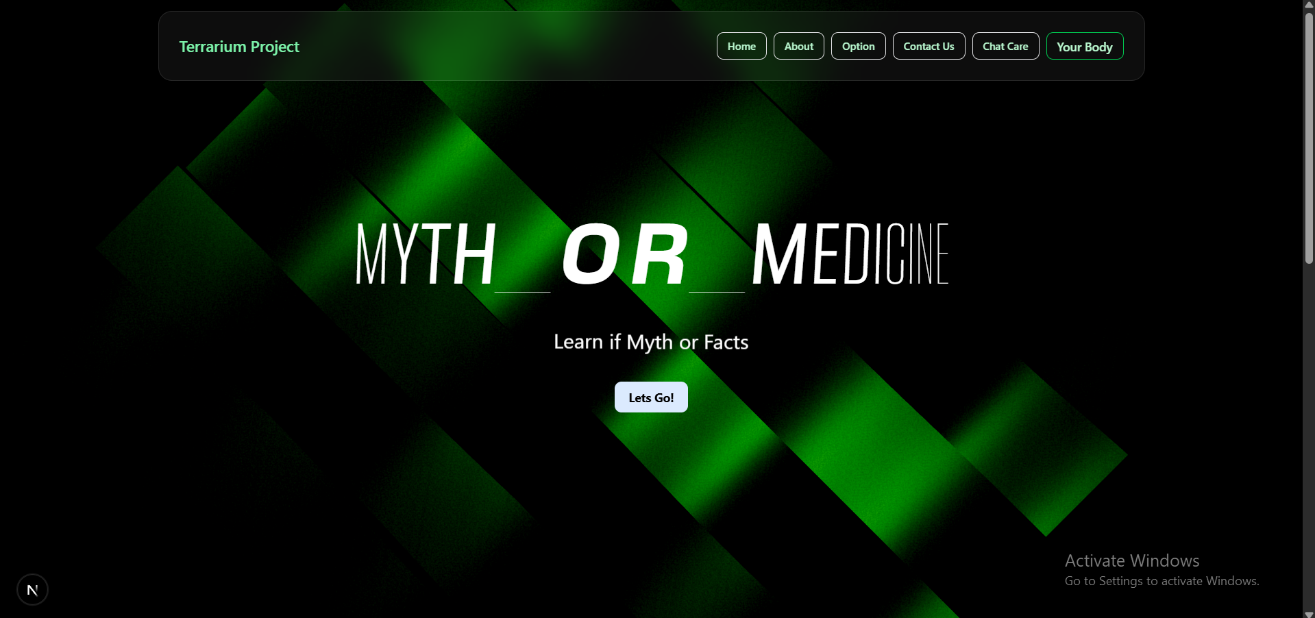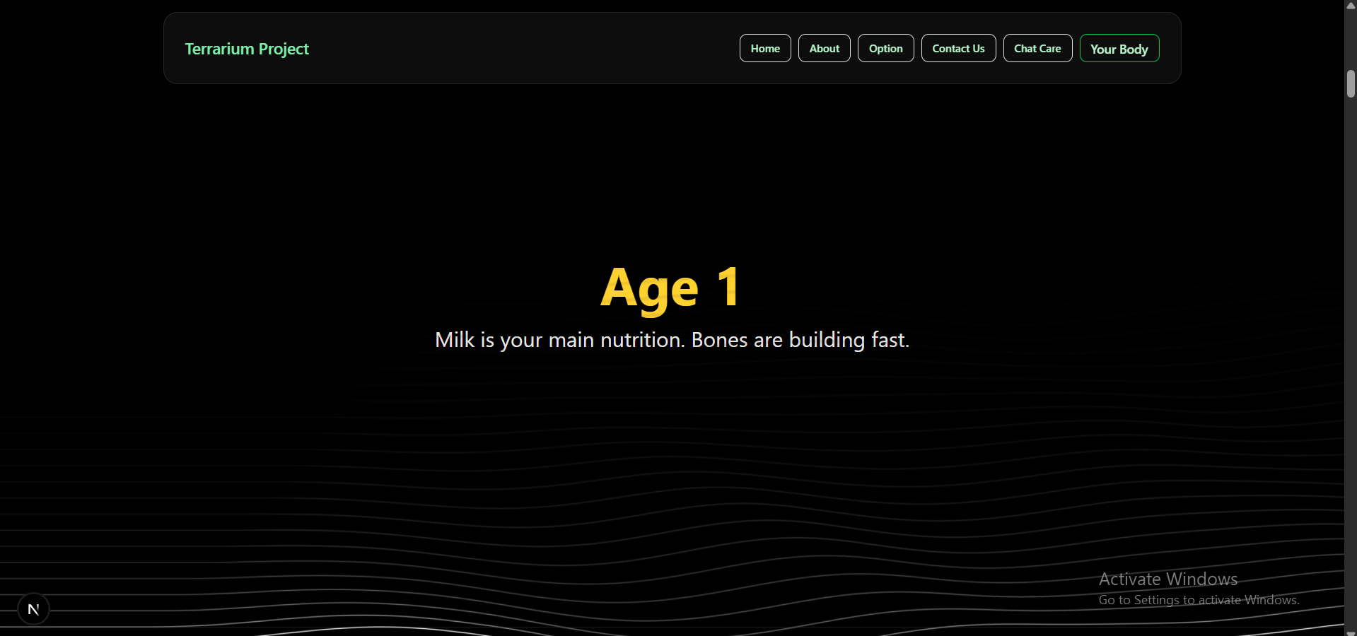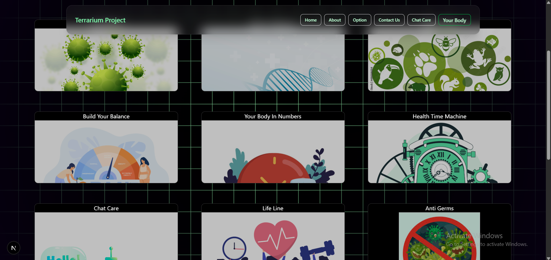 Terrarium is inspired by the interactive and playful style of Neal.fun, a site where learning is driven by curiosity and creativity. We wanted to bring that same joyful and accessible learning experience to the topic of health and well-being—targeted at kids, teens, or anyone looking to explore health in a fun way.