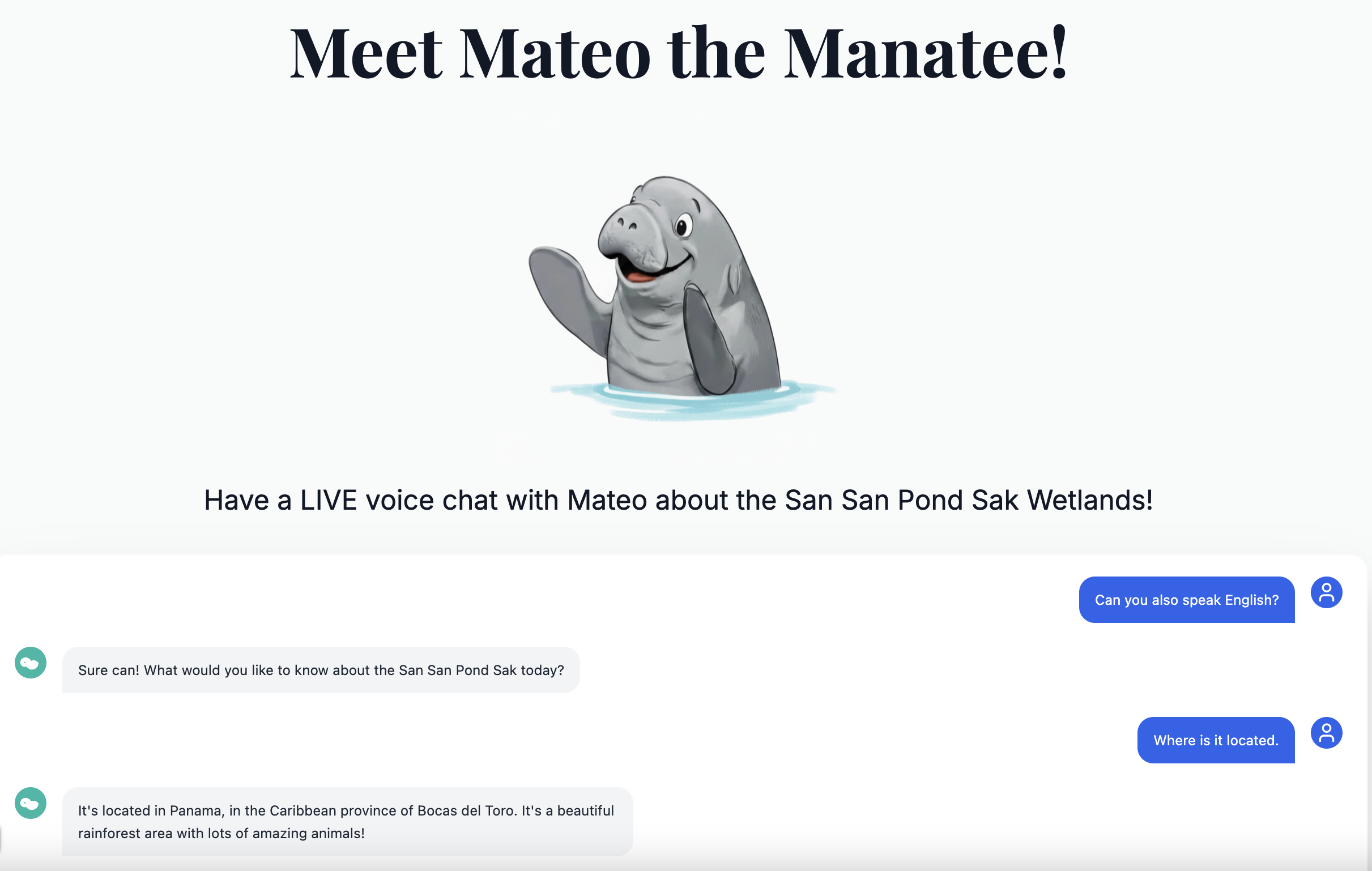 Ask Mateo the manatee anything about the San San Pond Sak Wetlands!