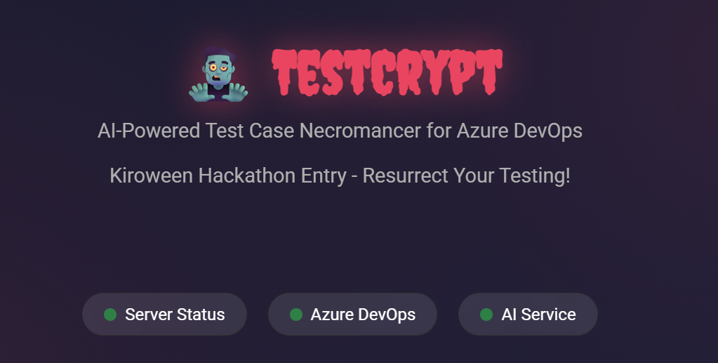 I asked myself: What if I could resurrect test cases from work items using AI? What if I could make this powerful enough for enterprise use, yet accessible enough for non-technical team members? And for Kiroween, what if we wrapped it all in Halloween theming that actually enhanced rather than hindered the experience?