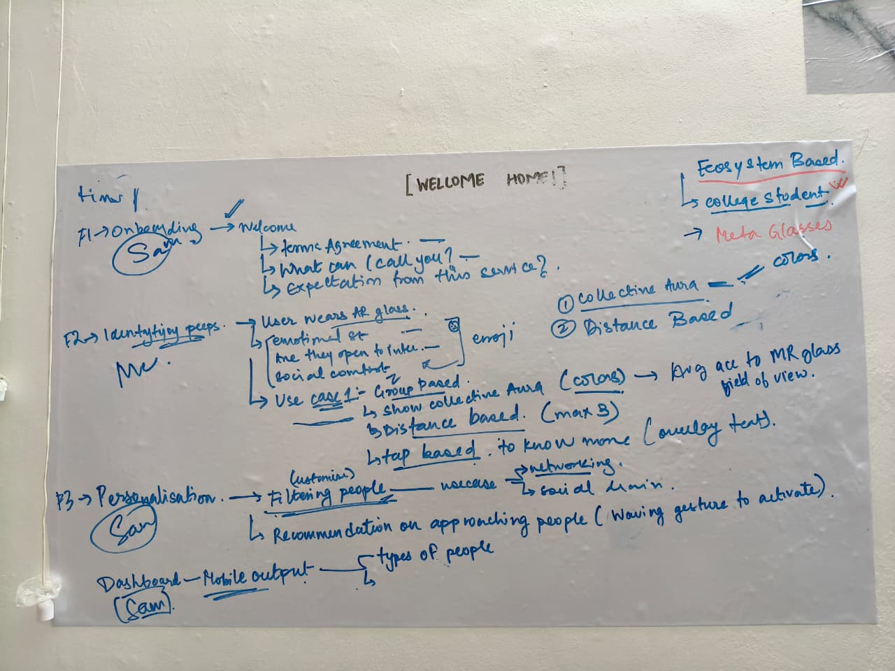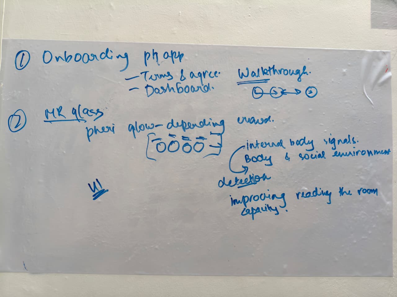 We began by exploring why people often feel anxious or uncertain in social spaces and what makes conversations difficult to navigate. Through research on social behavior, body signals, and environmental cues, we identified how people subconsciously sense comfort or tension in a room. This led us to the concept of Social Attunement, combining physiological signals with environmental sensing to guide social interactions. We designed an ecosystem consisting of a wearable band, MR glasses, and a mobile app for insights and reflection, and prototyped the experience through UI flows, scenarios, and visual designs.