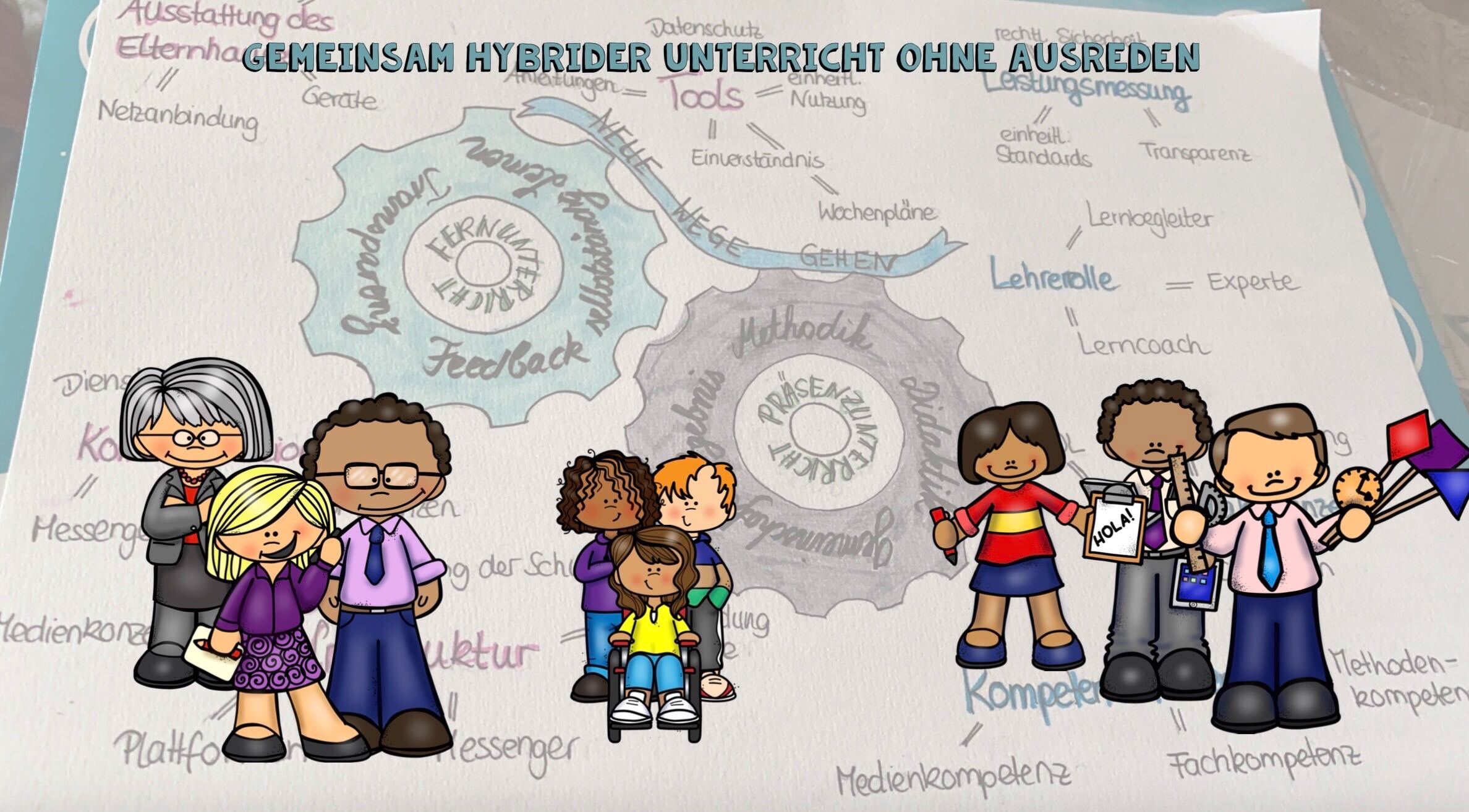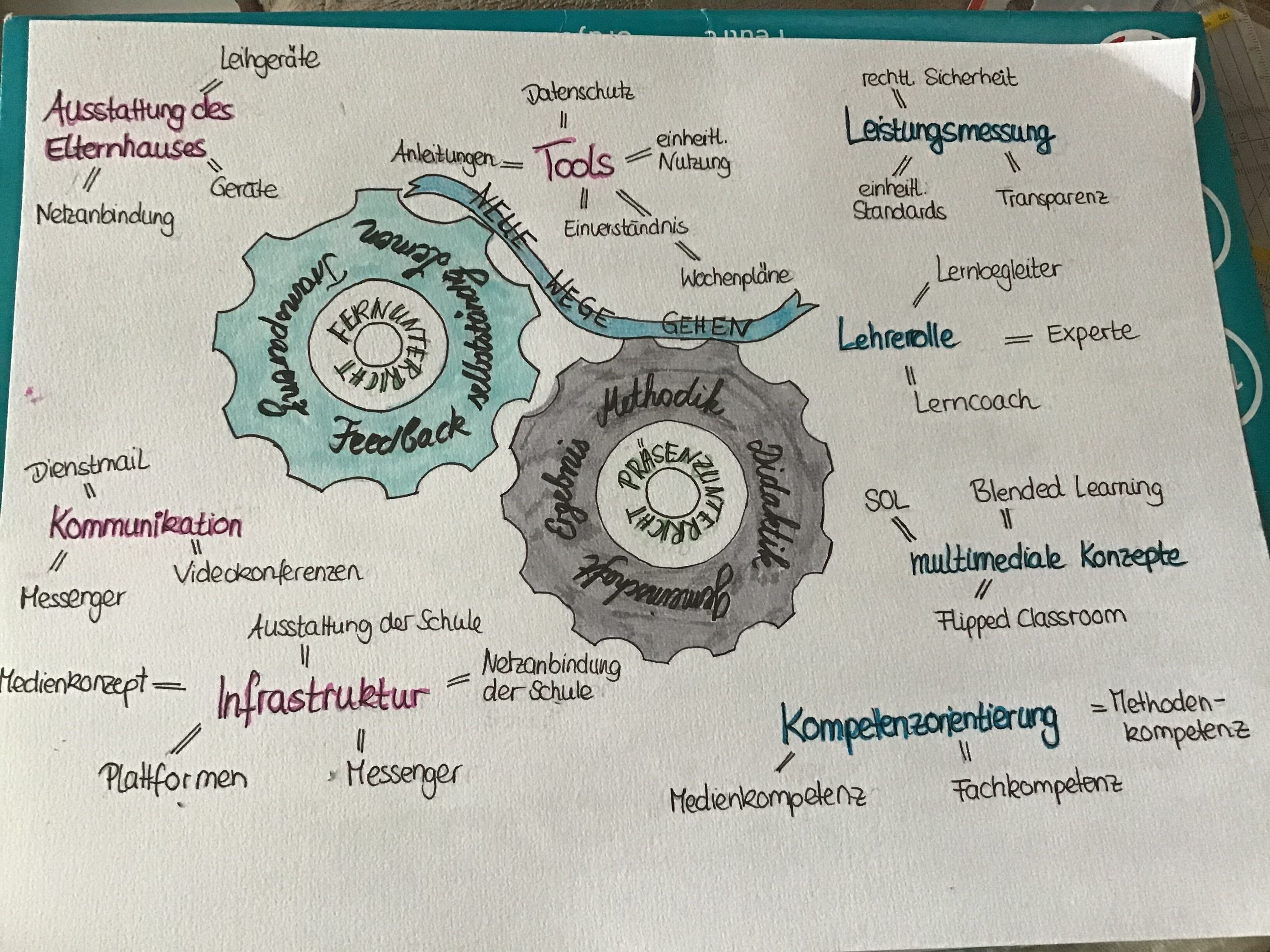 Nachdem wir in unserer Gruppe bereits einige Herausforderungen und Positivbeispiele geteilt hatten, waren wir uns schnell einig, dass der Hybridunterricht einige Vorteile hat und unter bestimmten Voraussetzungen an allen Schulen umsetzbar sein sollte. Viele Schulen sind mit der Unüberschaubarkeit an Ansatzpunkten überfordert und oftmals mangelt es an einer Kommunikationsbasis der Beteiligten (Eltern- Schüler*innen-Schule). Anhand mehrerer Positivbeispiele lässt sich ein Basiskonzept erarbeiten, welches Minimalanforderungen stellt und somit für alle Schulen umsetzbar und je nach Bedarf erweitert werden kann. Dieses Basiskonzept sollte einen Leitfaden für Schulen enthalten, an dem diese sich orientieren können und der allen möglichst unbürokratisch zur Verfügung gestellt werden kann (z.B. über ein Blog).