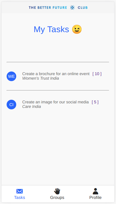 - Once a task is completed, people can post photos, which are verified by the platform and the NGO, to earn points and achievements.