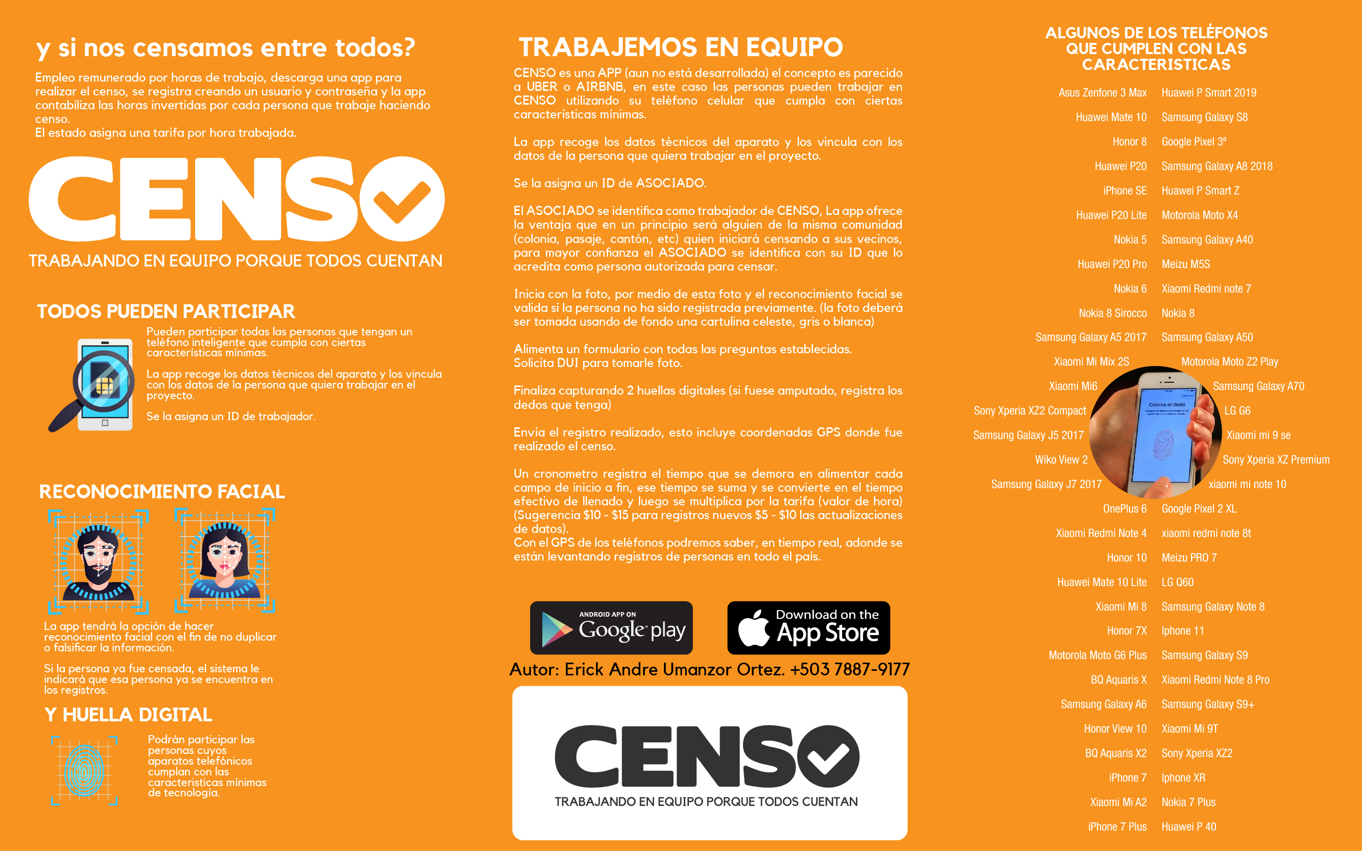 CENSO es una app que nos permitirá a todos poder hacer un censo poblacional en poco tiempo, con bastante detalle, con parametros de seguridad, a bajo costo y con bastante presición, al mismo tiempo será una nueva fuente de ingreso para muchas familias Salvadoreñas. Basicamente se trata de censarnos entre todos.