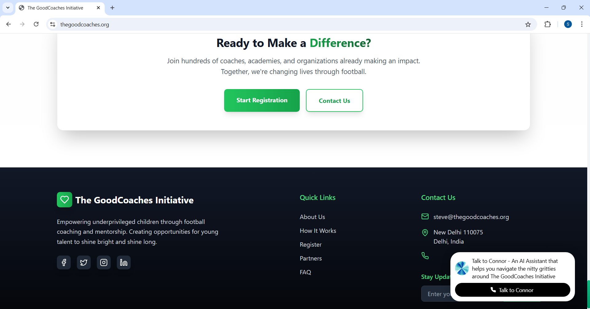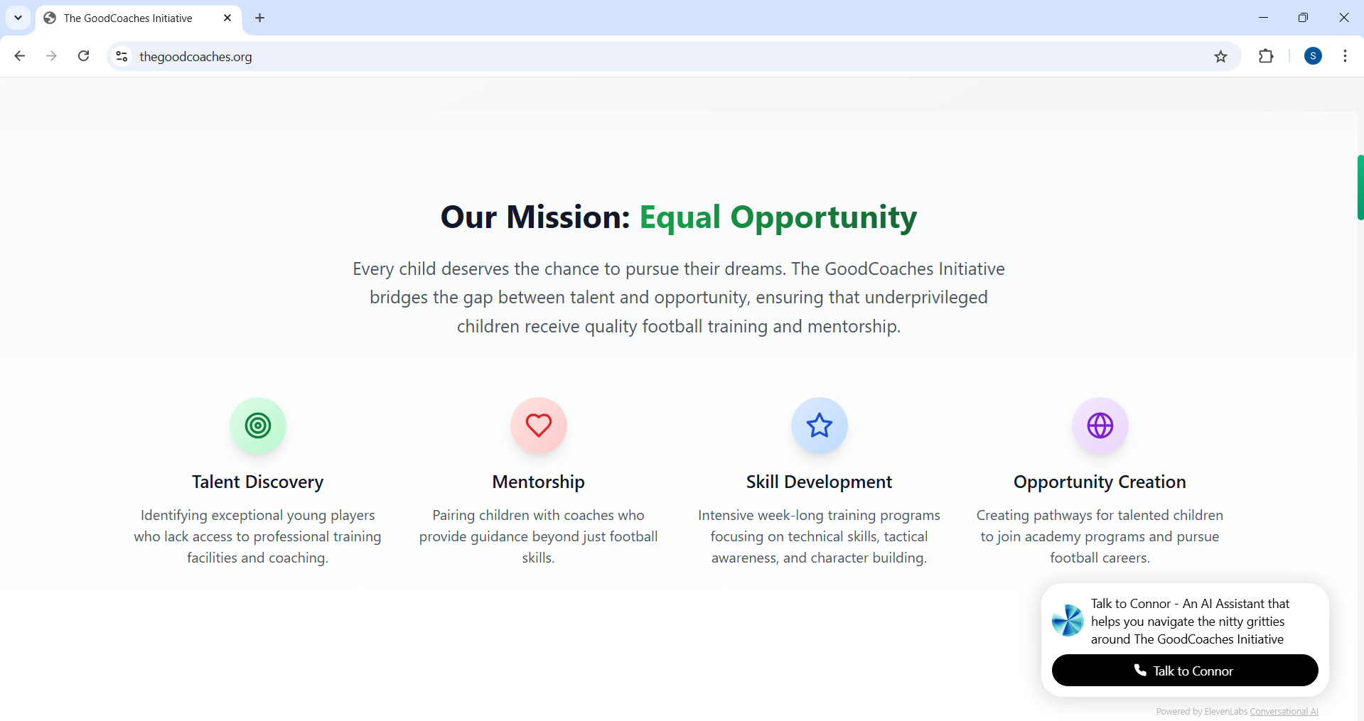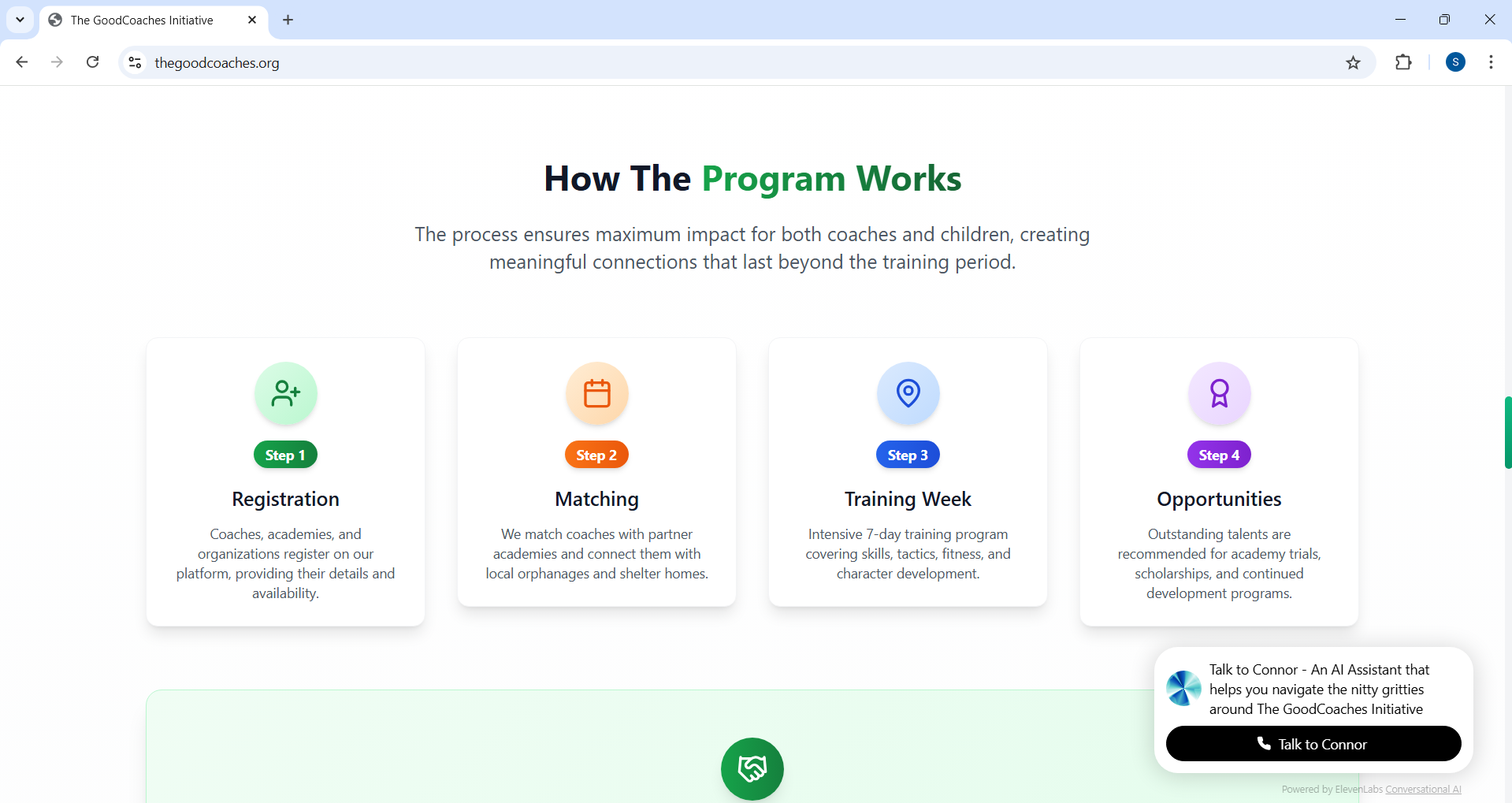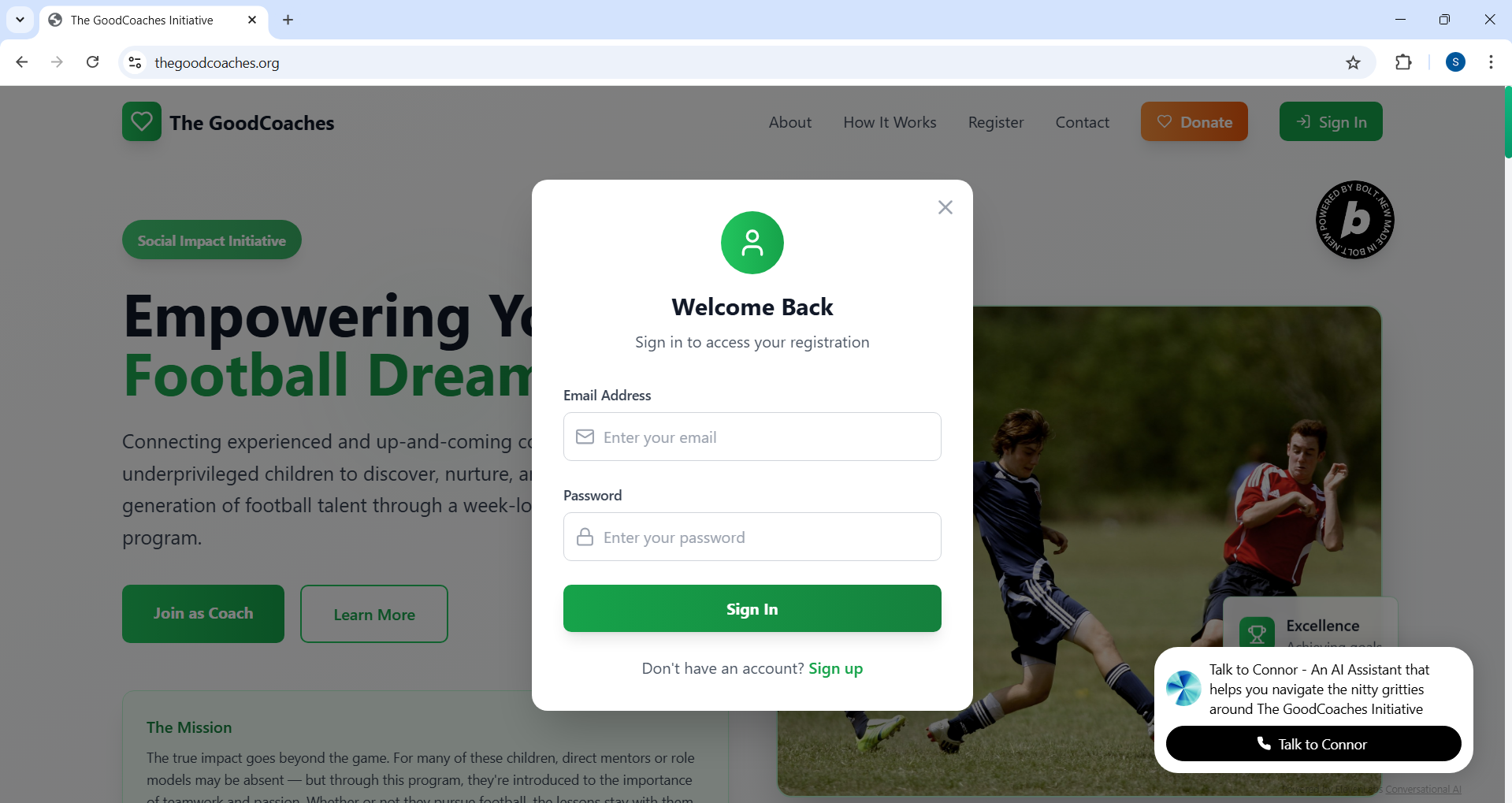 The GoodCoaches Initiative is a digital platform that connects new and experienced football coaches with underprivileged children from orphanages, shelters, and foster care. Partnering with academies willing to offer facilities, the platform enables these children — who would possibly otherwise never get the chance — to be trained, mentored, and possibly scouted by professionals.