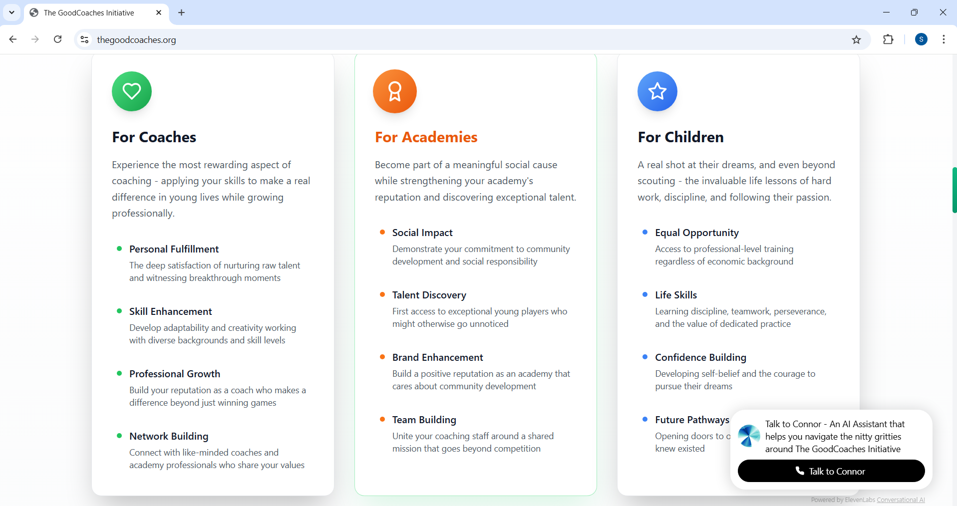 - Got the website live with a real domain: thegoodcoaches.org