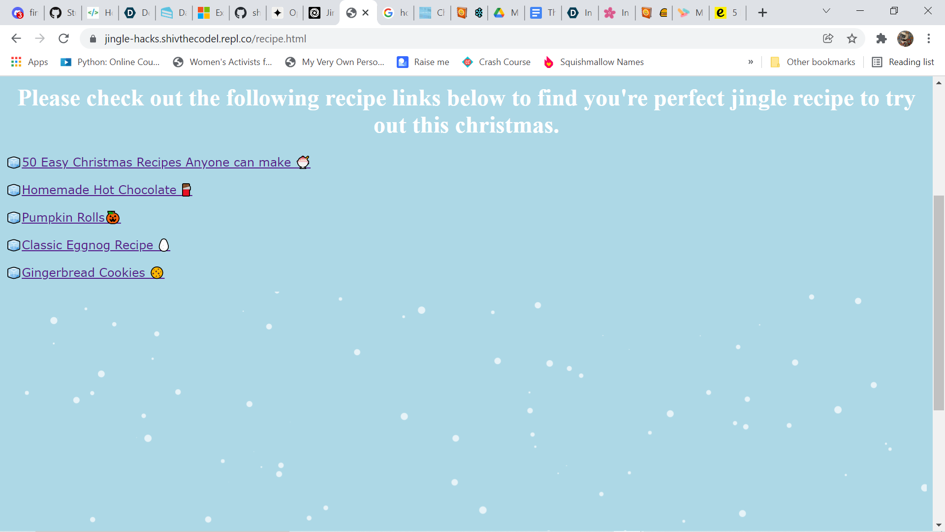 Next, I want to create an account for The Great Christmas Exchange to allow people to personally contribute and be able to do more on the website. I also want to add customizable playlists and recipes rather than just having ready-made ones.