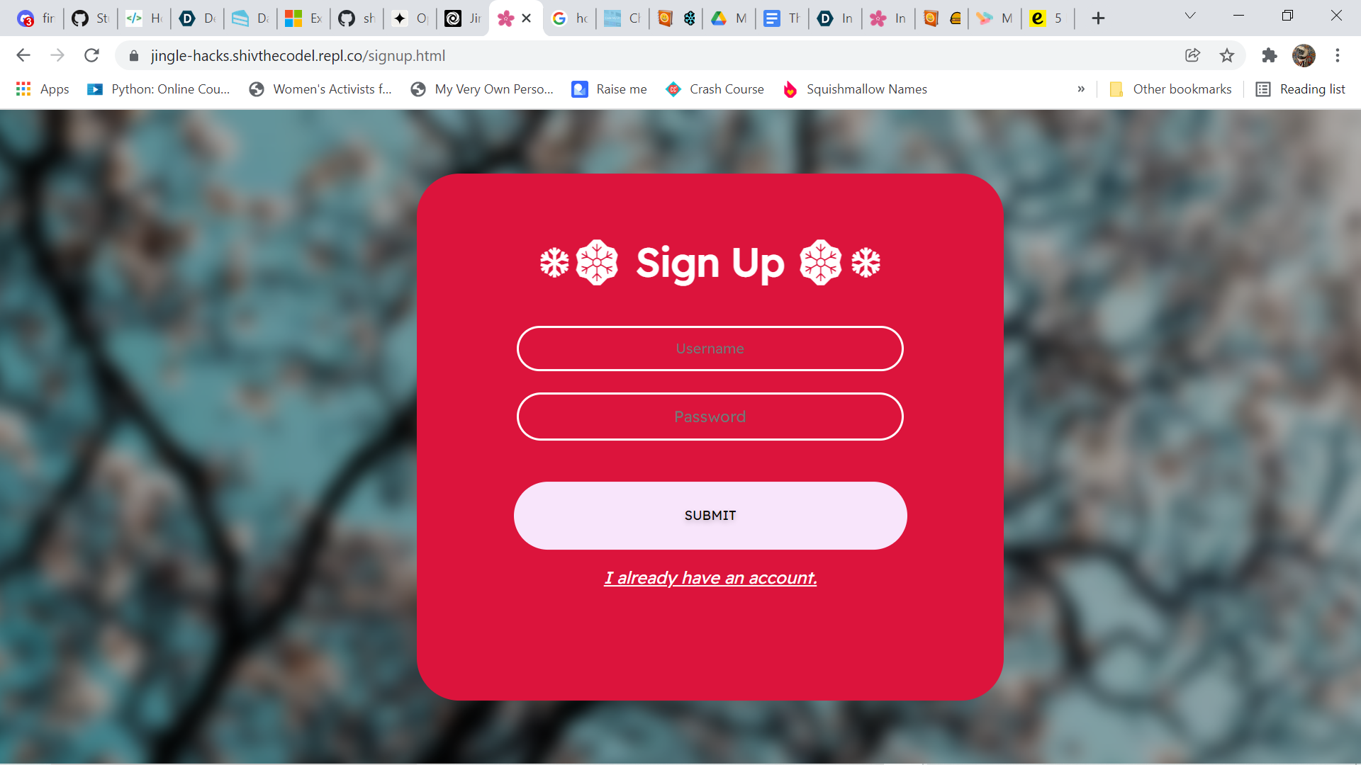 Unfortunately with just 1 day to create this project and other projects that I needed to make for other competitions I am doing this weekend, time was not on my side. If I had had more time, I would have made my website look more developed and fancy and I would have actually developed the sign-in feature to have an actual account.