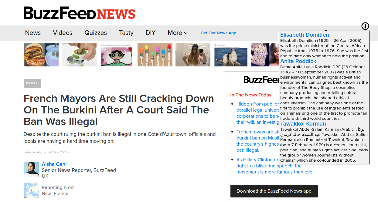 We are building a tool designed to integrate with existing websites such that users reading articles will be exposed to important women in our history and how they have helped progress humankind.