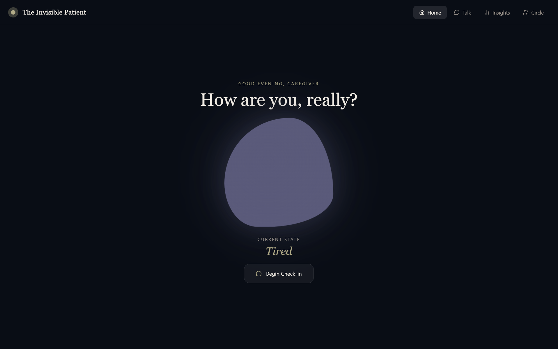 Built with a React frontend and CSS keyframe animations. The AI companion runs on Anthropic Claude Opus via the Messages API, operating under a carefully engineered system prompt built around Reflective Validation, a therapeutic communication framework that mirrors emotions back without judgment, never offers unsolicited advice, and names patterns like the Guilt-Anger Cycle, Identity Loss, and Time Deprivation with clinical precision and human warmth.