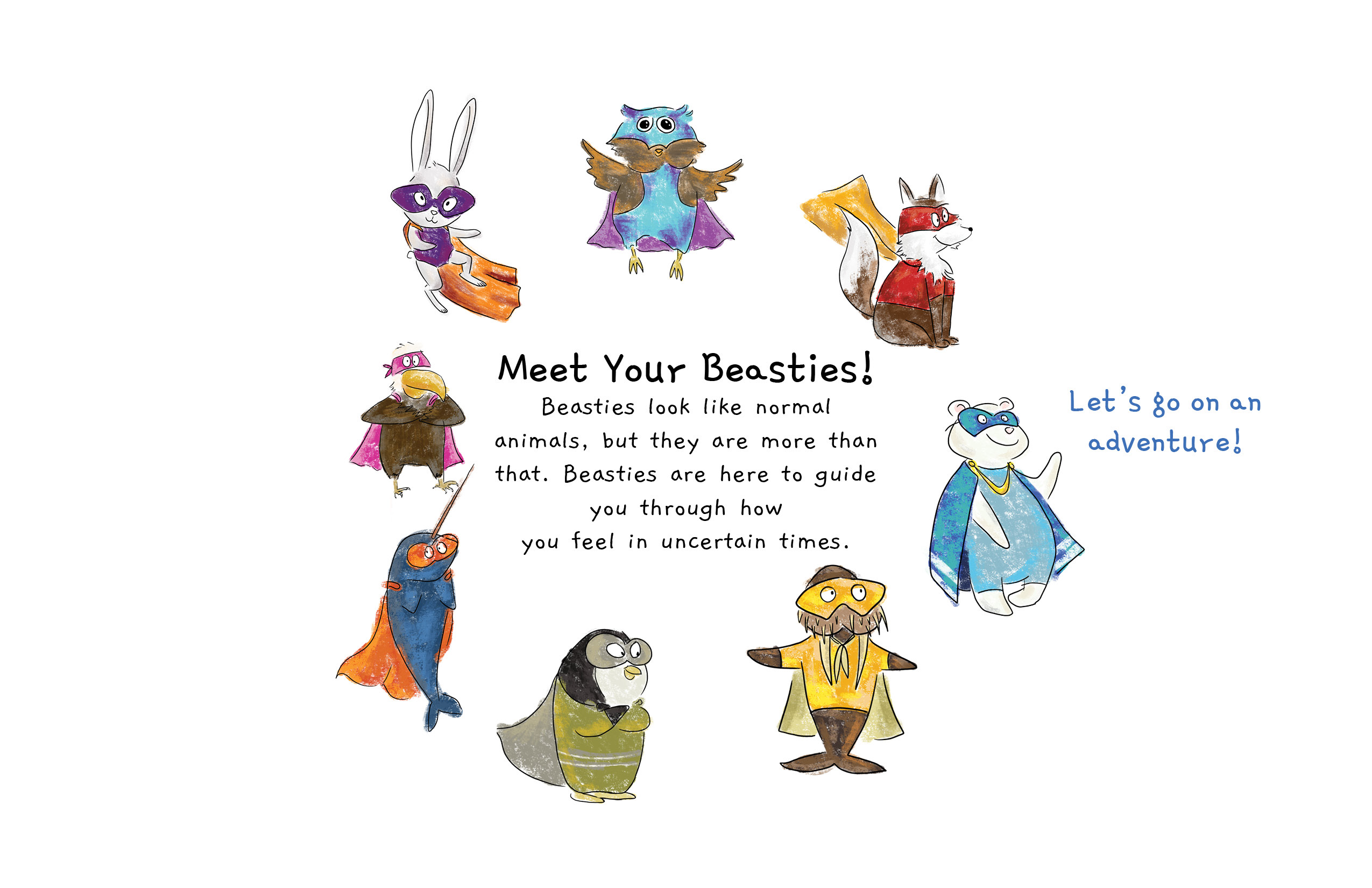 We hope to empower kids to share how they feel through these hard times by creating Beasties to symbolize and mirror qualities they seek and qualities they may not like. Beasties represent different emotions, and emotions are energy in motion. When they get stuck, they have a lot of ripple effects in our lives and ultimately lead to dis-ease. What do we do about it? We tune into our Beasties to help recognize our emotions, uncover how we feel, and develop a vocabulary for our emotional world. We took inspiration from our favorite children's books, Mr. Rogers, and conversations we were having with little ones around us to explain confusing times, and most importantly, how they feel.