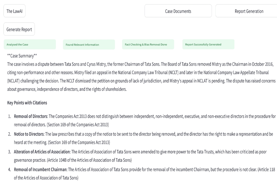 We developed a comprehensive Generative AI Legal Research Assistant designed to transform legal research through: