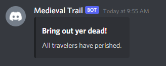 I was thinking about this year's theme. Naturally, Oregon Trail made an appearance in my thoughts. And who doesn't like Oregon Trail (don't answer that)?!? So, this is a medieval version of the classic game full of death and dysentery.