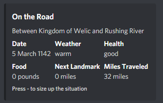 After a very long nap from all the coding, I hope to add more features to it (gotta have some dragon hunting at landmarks and maybe an unexpected witch hunt). I also really want to add images. I had planned to do that from the start but realized pretty quickly that I would not have time to do functionality and UI.