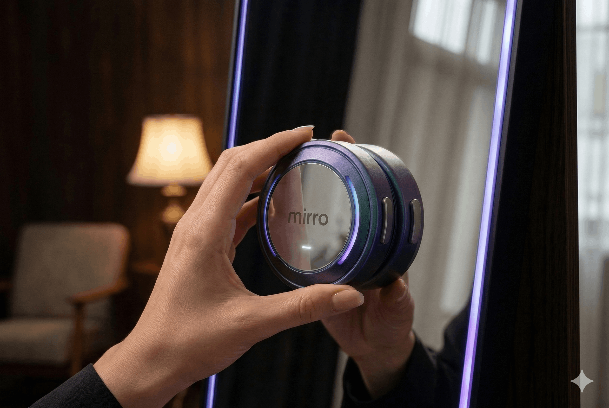 Mirro is designed as a small attachable chip that converts any regular mirror into an accessible smart mirror.
