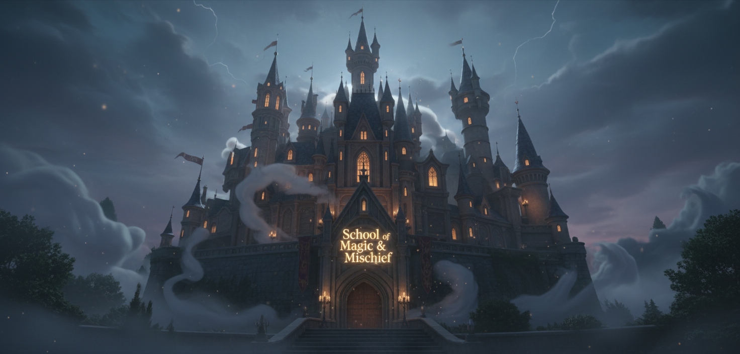 We wanted to reimagine a Disney-style fairytale with a deliciously wicked twist. What if a magic school didn’t train heroes — but villains? Inspired by Maleficent’s patronizing wit, gothic animation, and the playful chaos of classic Disney 3D worlds, The School of Magic & Mischief was born.