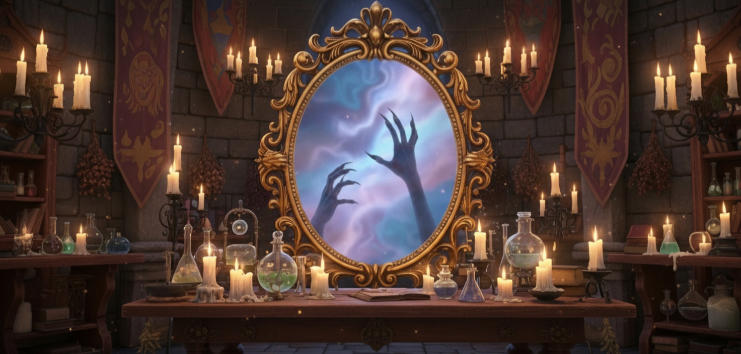 Achieving stylistic consistency across mirror, potion, and outdoor scenes.