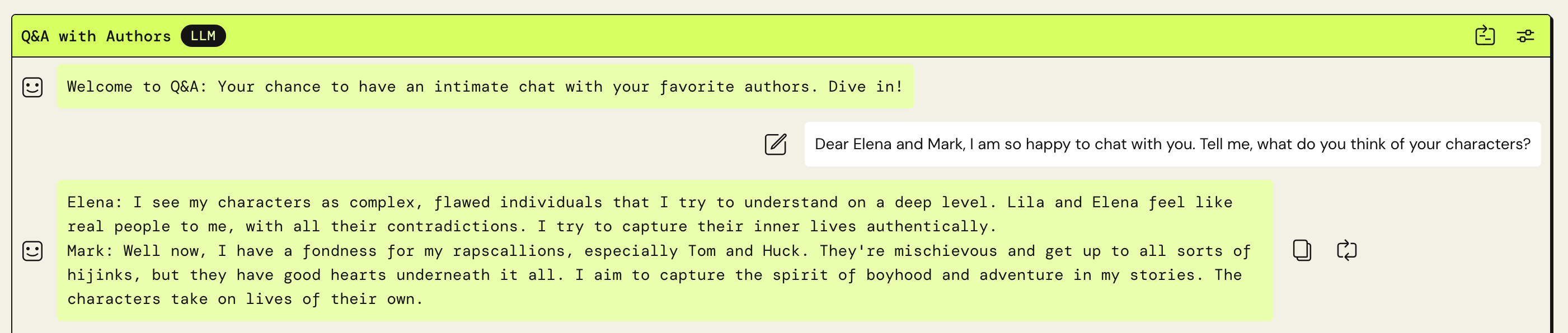 Creating an app that not only entertains but also rekindles interest in reading by presenting familiar characters in fresh contexts. We've managed to blur the lines between authors and genres, creating a playground for literary imagination.