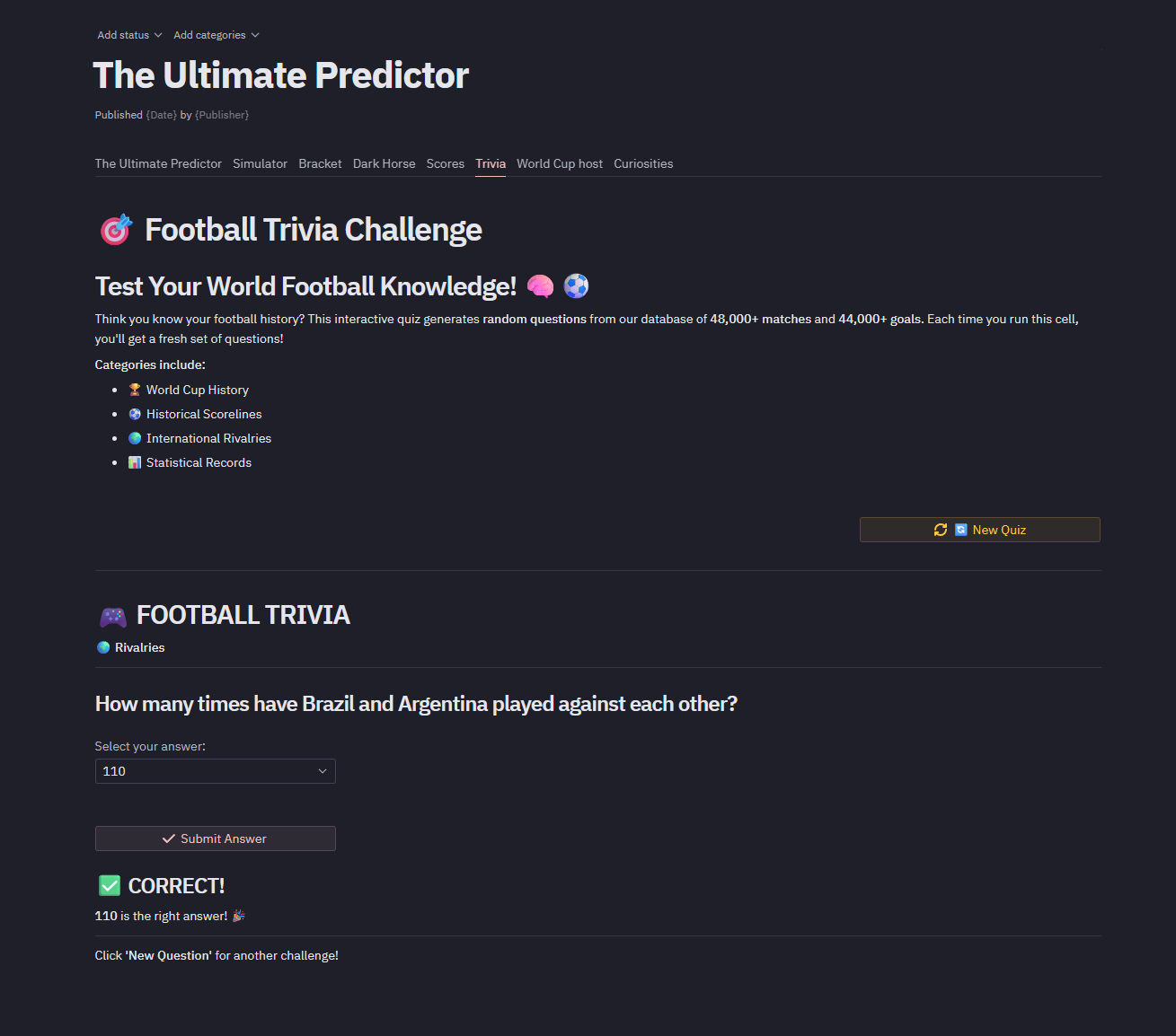 - 🧠 Football Trivia: Test your knowledge with dynamically generated questions from real historical data