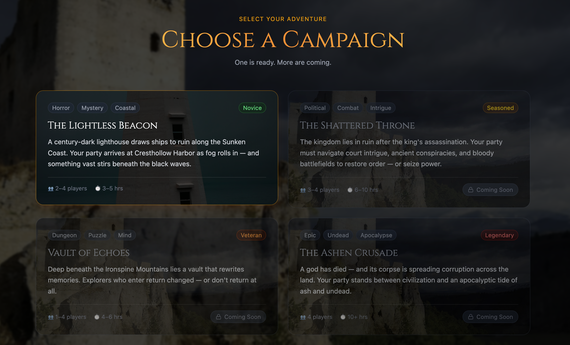 Our long-term vision is to make high-quality, story-rich tabletop experiences more accessible while staying faithful to the roleplaying community. We believe AI should amplify imagination, not flatten it.