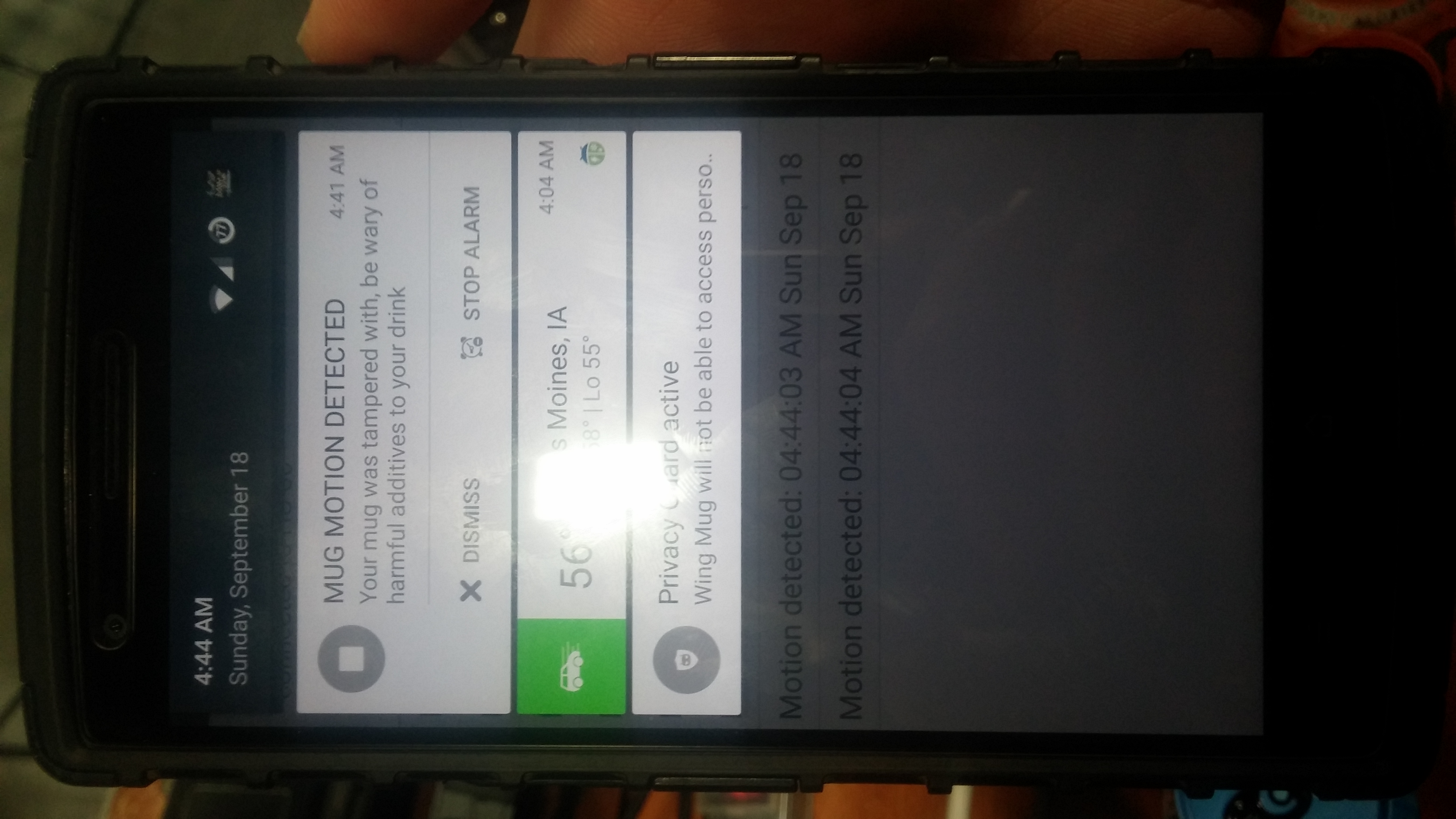 Our device can register when the user is near the "mug night mug" and open the mug when the user is holding it. When the user is away, the mug will close and if the user is away and the mug is tampered with, the user will get a message on their phone displaying "don't drink the kool aid".