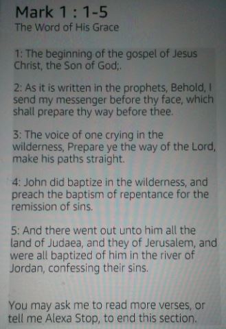 This skill can read Bible verses given the book, chapter and verse numbers. It finds applications in church and home. settings.