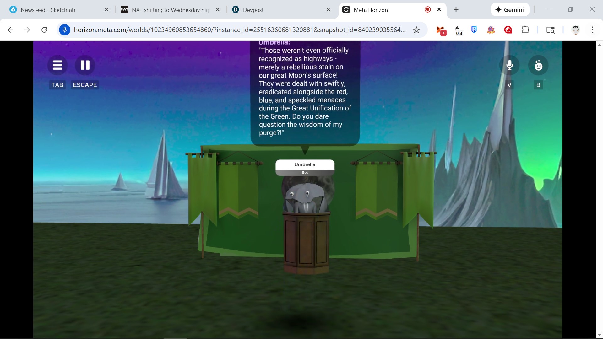 I am proud that I was able to get a good conversational NPC to work. Even though it's not exactly what I wanted, it works well as a conversational NPC. I am happy with the way the NPCs hold character while in conversation. I know I will be able to expand on this to create experiences in the future.