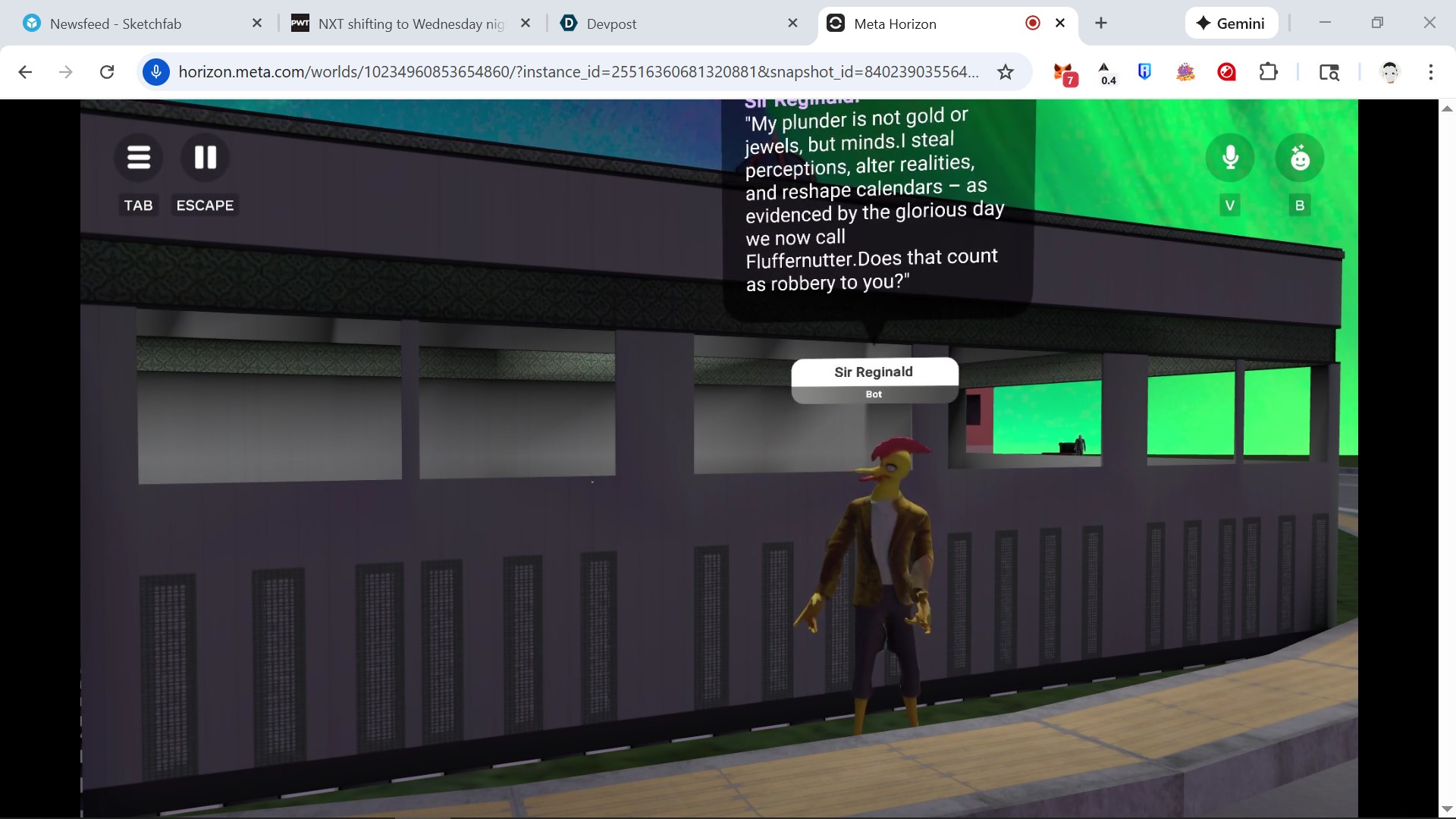 Sir Reginald, a grifting rubber chicken