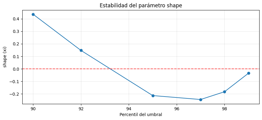 Control de estabilidad para el parámetro shape.
