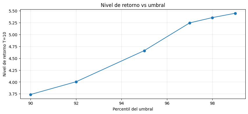 Nivel de periodo de retorno por respecto al umbral