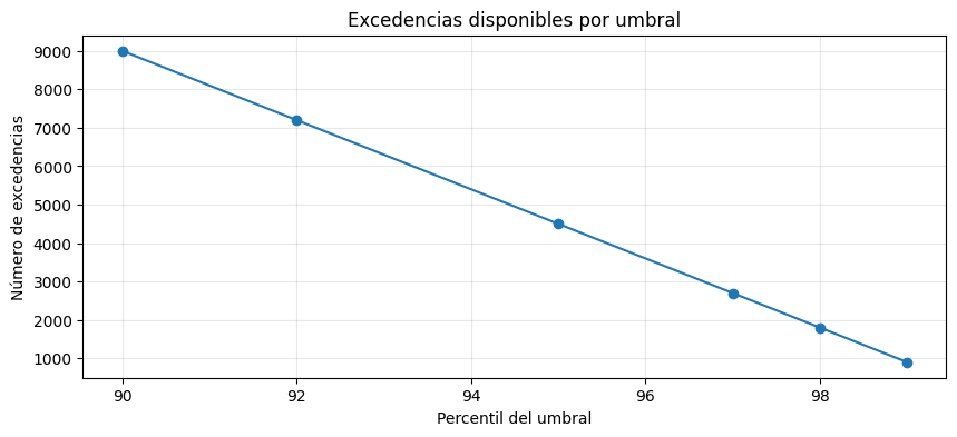 Excedencias por umbral ajustado a la red bayesiana.