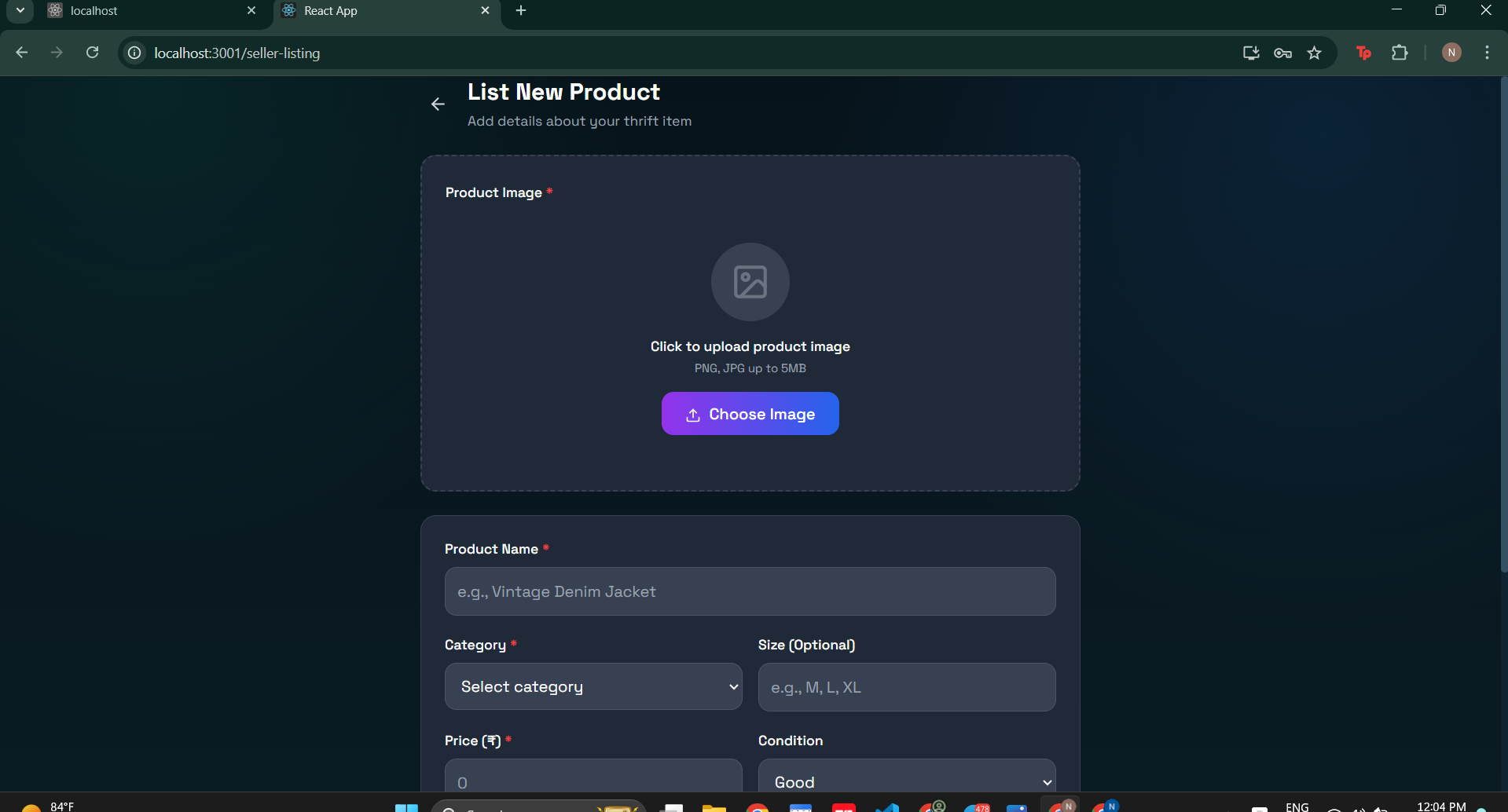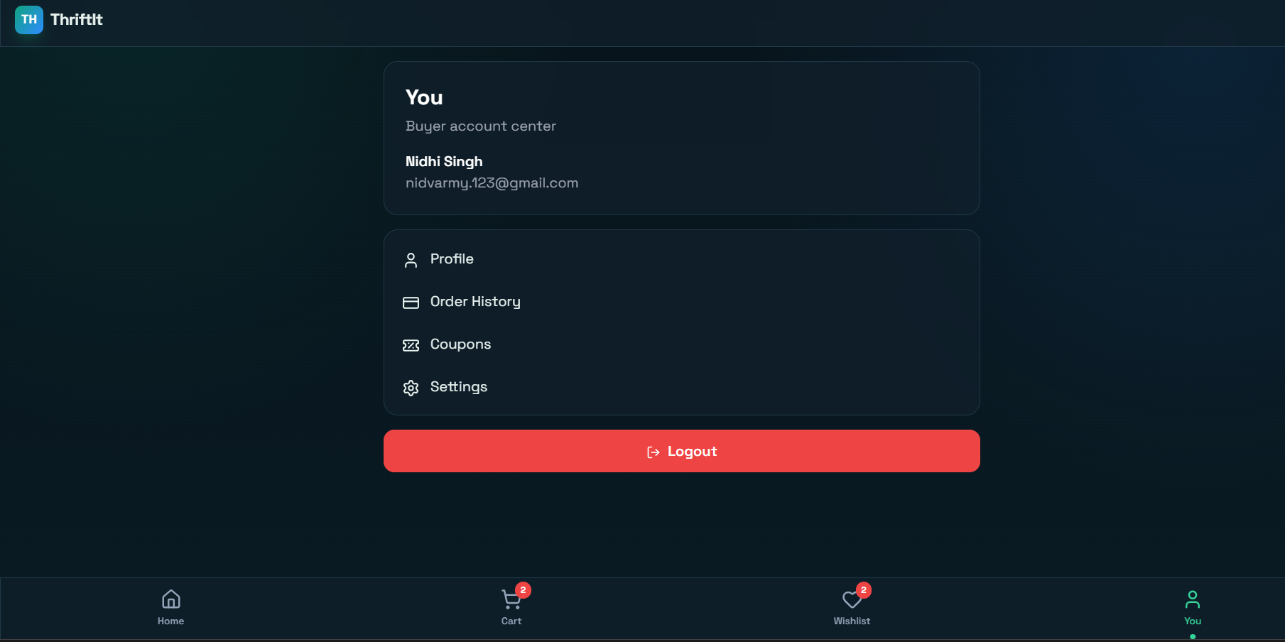 ThriftIt is a full-stack web app supporting both a buyer and a seller experience — two distinct user journeys sharing one coherent platform.