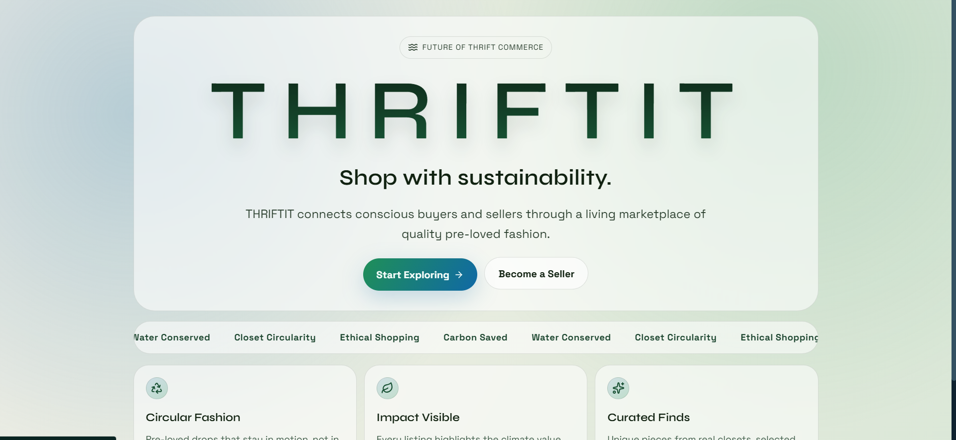 The fashion industry discards billions of garments every year — not because they're worn out, but because the systems around reuse are too slow, too sketchy, and too inconvenient. ThriftIt started from a straightforward observation: the clothes exist, the demand exists, and what's missing is a marketplace that treats second-hand shopping as a first-class experience.