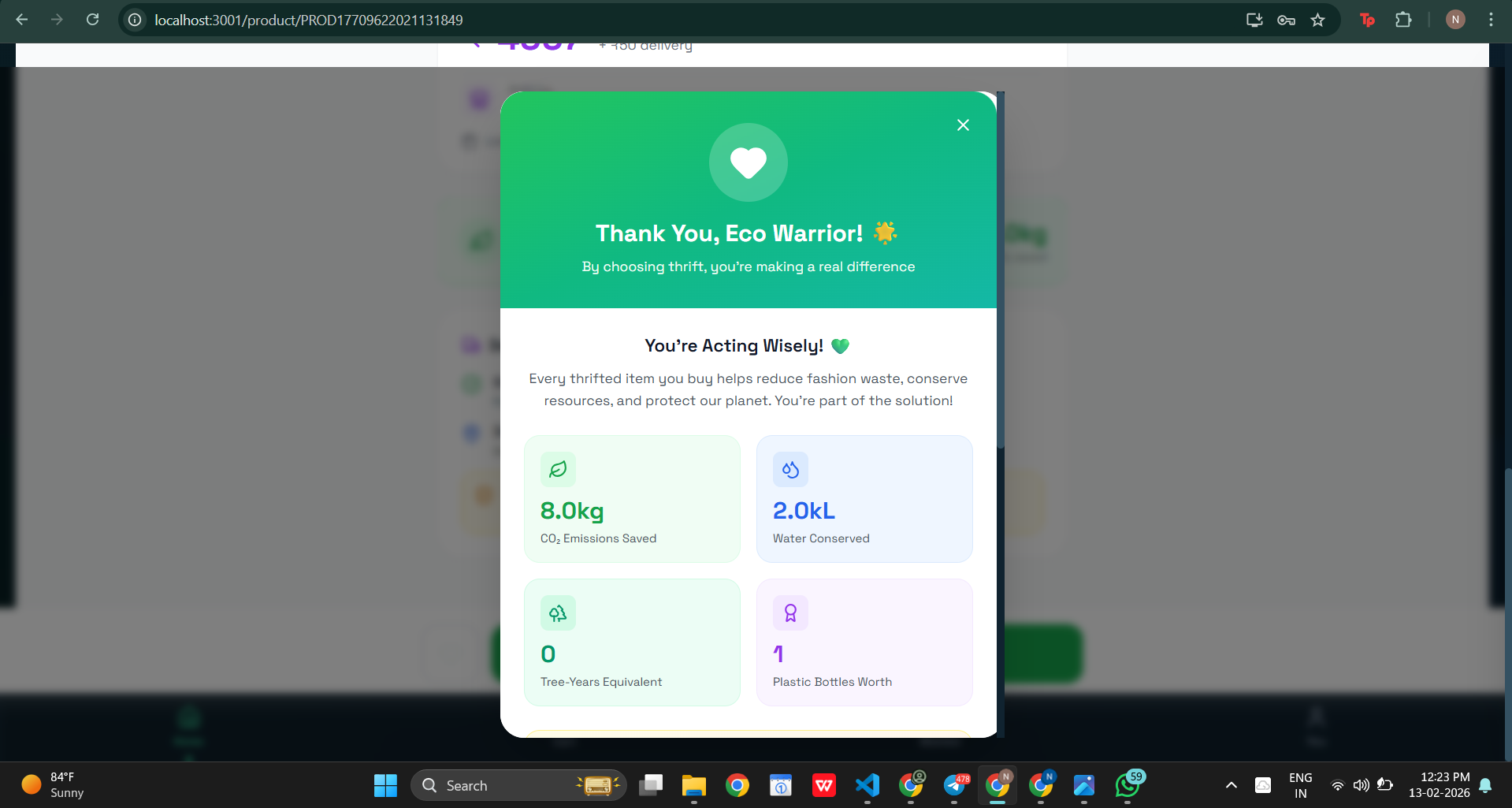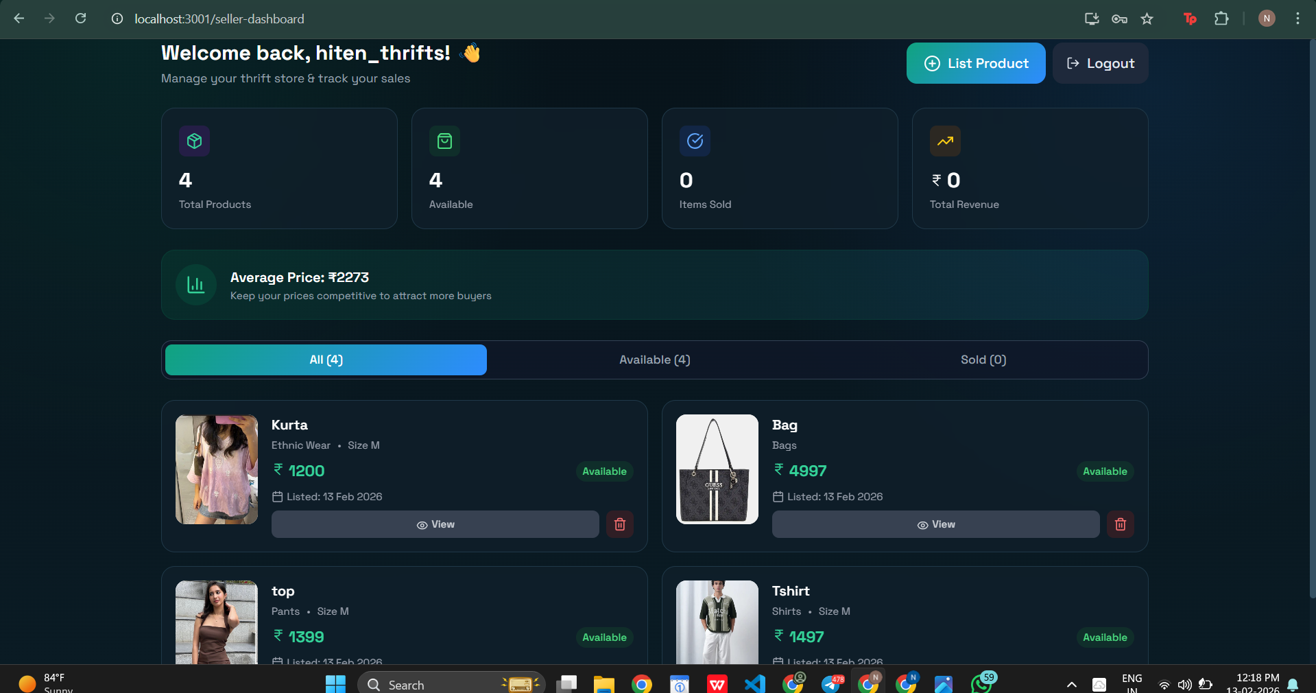 ThriftIt grew from a sustainability idea into a full product engineering problem — one where UX, architecture, performance, SEO, and business logic all had to work together, not in isolation. The version I built here is a foundation: the multi-role marketplace, the optimised delivery layer, and the discoverability infrastructure are all in place. What comes next is scale — more sellers, richer search, and impact metrics surfaced directly in the product so users can see the environmental difference their purchases make. The core conviction hasn't changed: make reuse easier than buying new, and people will choose it.