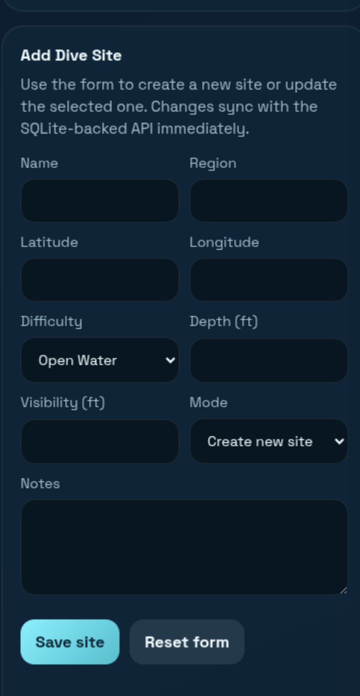 An accomplishment we are most proud of is that TIDE now has persistent storage with SQLite, which makes it much more applicable to users. We also built a clean workflow where users can view dive sites on a live map, sign in with Google, and contribute new data through the app. Another accomplishment is that the backend keeps track of who added or updated each site, which makes the data more trustworthy.