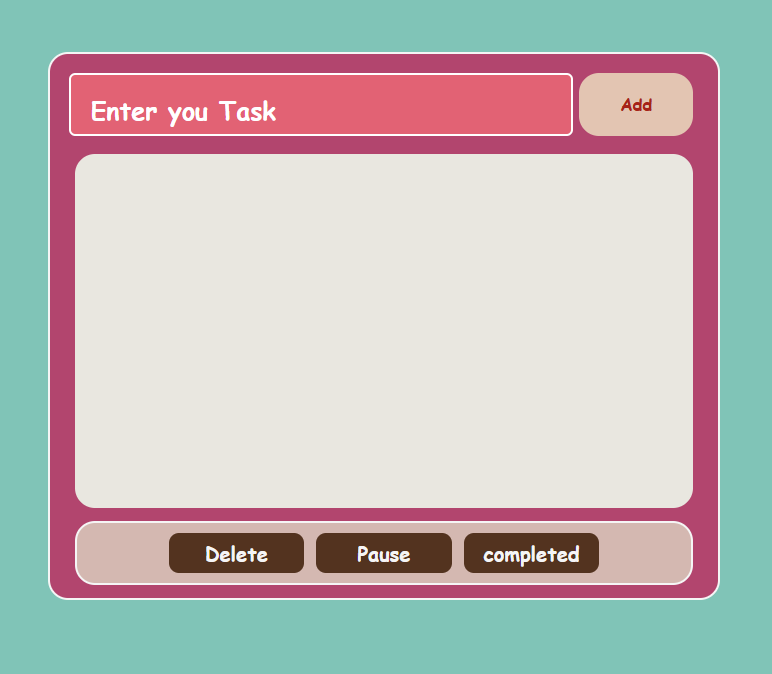 ✅ Add Tasks – Users can quickly add new tasks. ✅ Delete Tasks – Remove individual tasks or delete all tasks at once. ✅ Pause Tasks – Put a task on hold (can’t mark completed until unpaused). ✅ Mark Completed – Mark tasks as completed to track progress. ✅ Pause All Tasks – Instantly pause all active tasks. ✅ Persistent Storage – Tasks are saved in localStorage and loaded automatically when the app is reopened. ✅ Keyboard Support – Pressing Enter adds a new task.