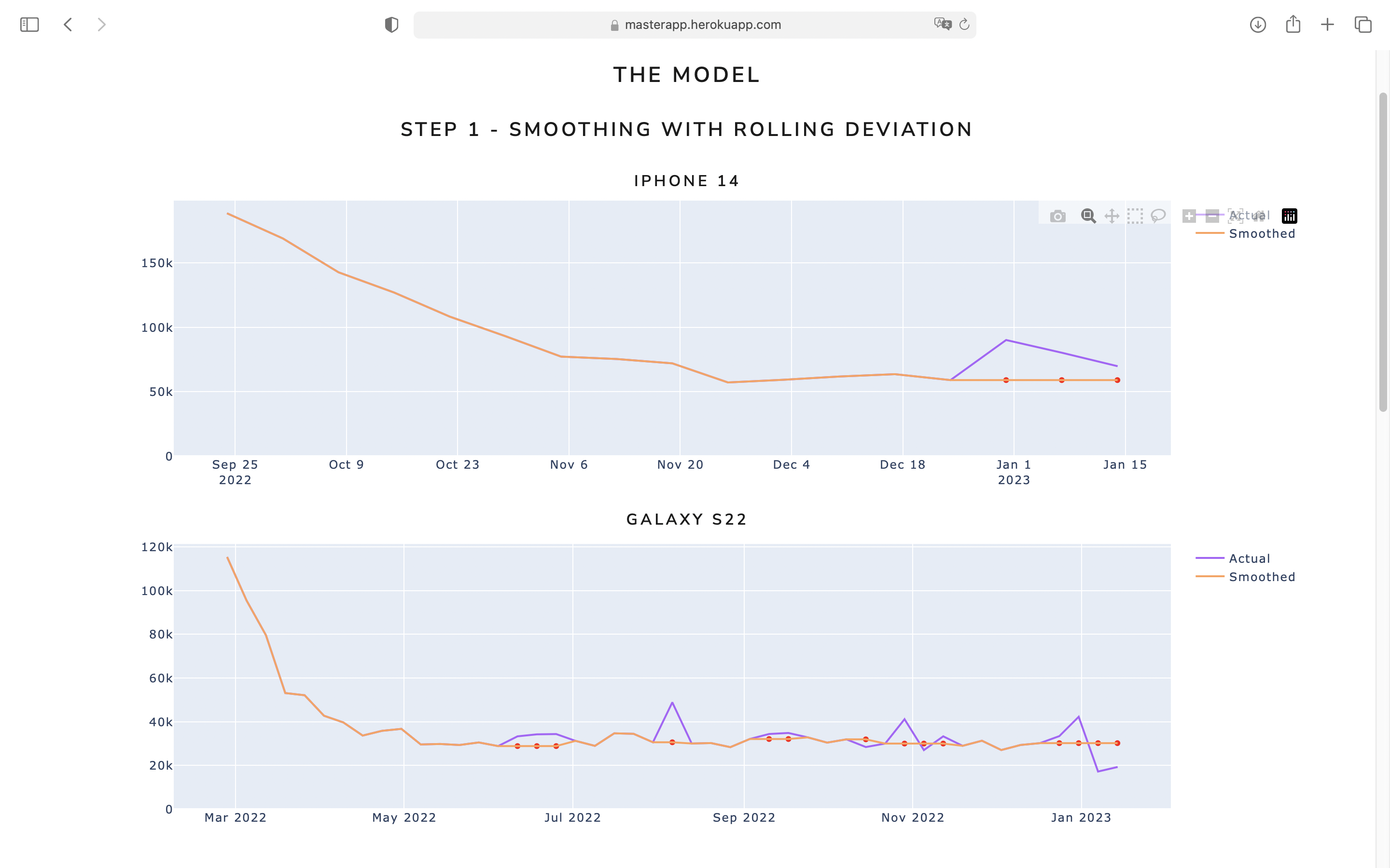Our system and dashboard allows its users to monitor the available stock of mobile phones ready for sale. Combining this with our system's analytic capability, we would be able to have a bigger and clearer picture when it comes to how our current inventory stands up to the potential demand predicted by our system. Our robust algorithm forecasts income demand 10 weeks in advance, by incorporating holiday patterns,