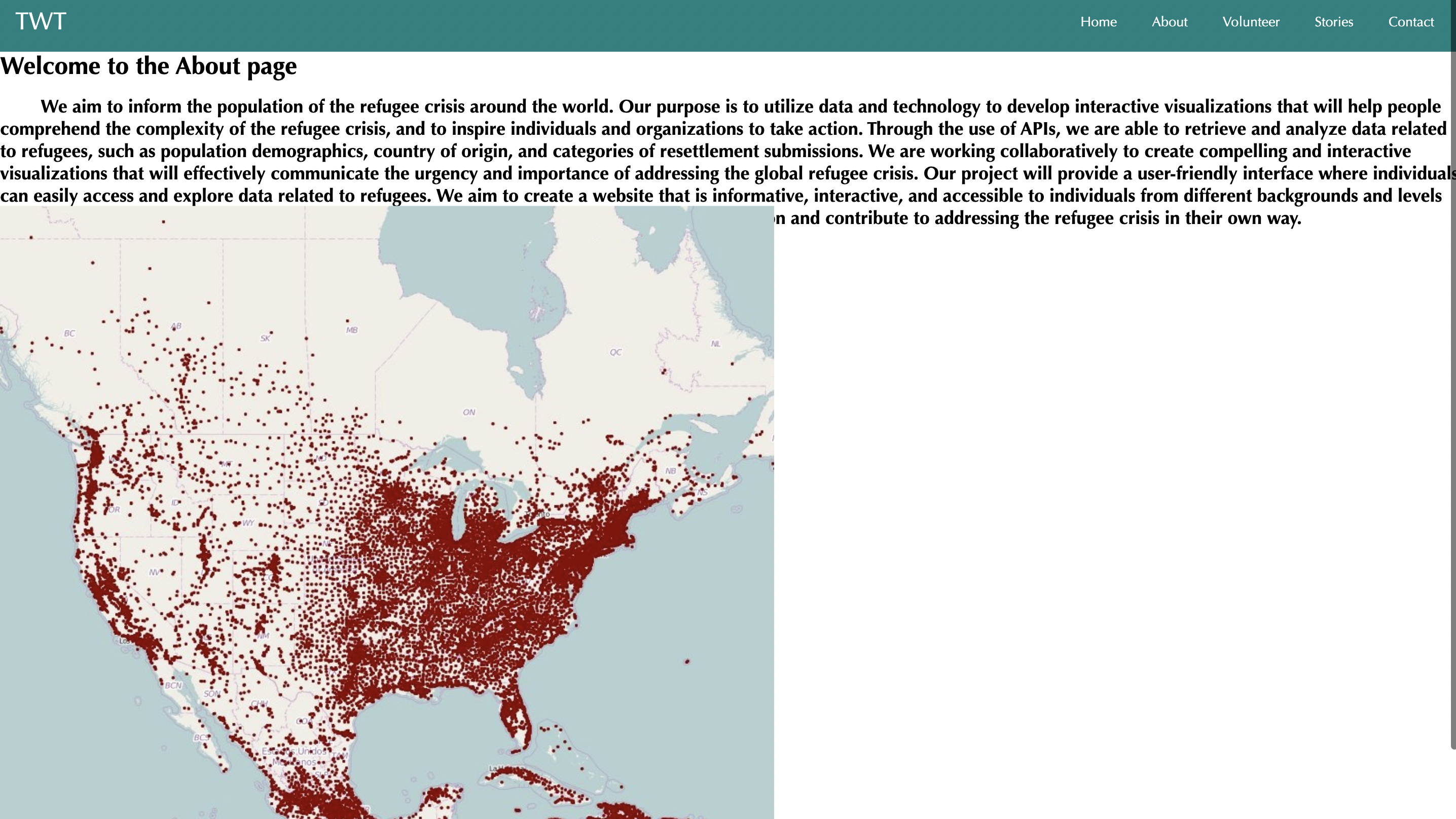 Through this project, we learned a lot about how API's work, web development, and the refugee crisis more broadly. We also gained experience working collaboratively with a team and coordinating our efforts in such a short amount of time.