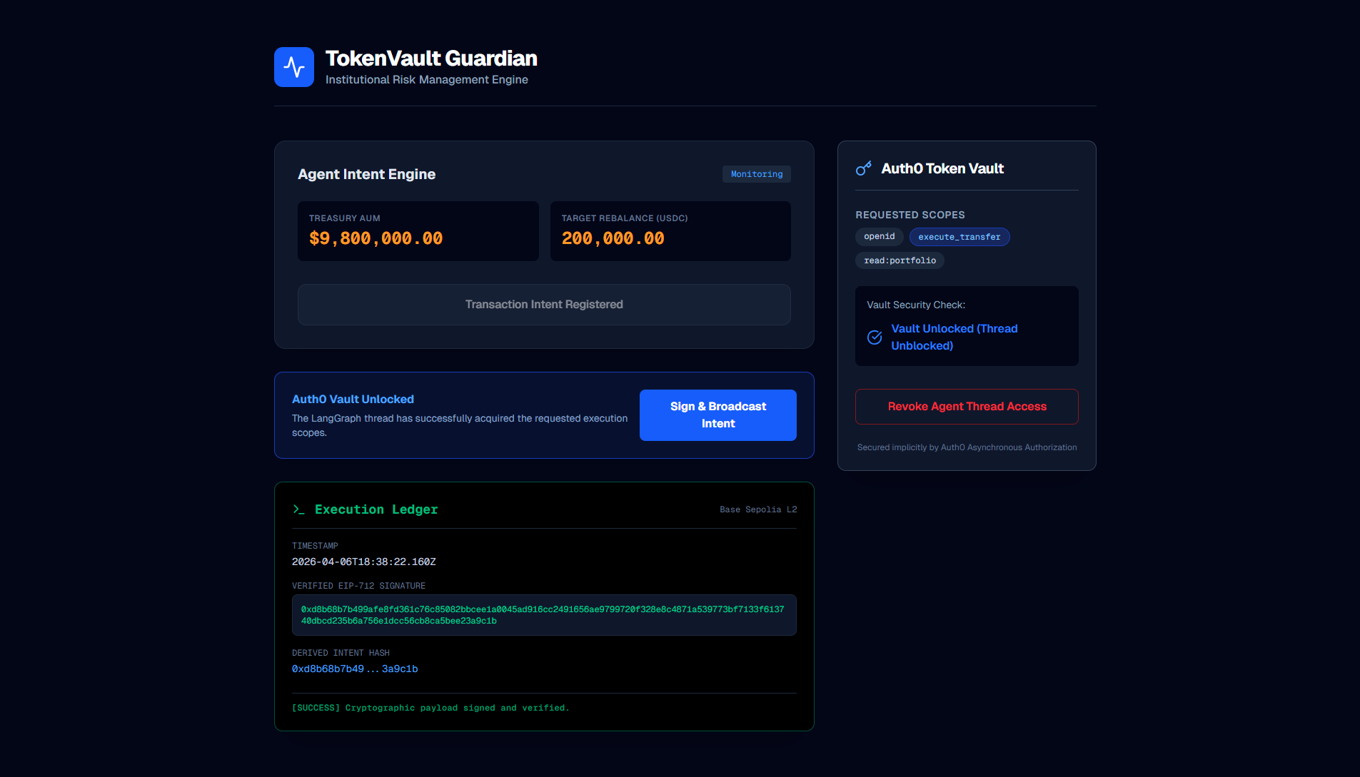 When our custom LangGraph trading agent detects the intent to rebalance a high-value Treasury, it is mathematically incapable of doing so autonomously. Instead, the agent forcefully halts its execution thread and delegates entirely to the Auth0 Token Vault.