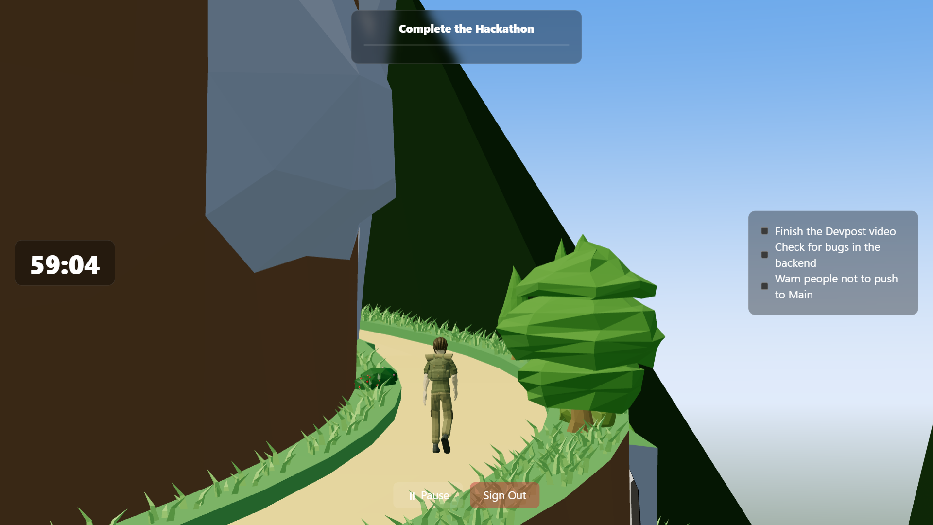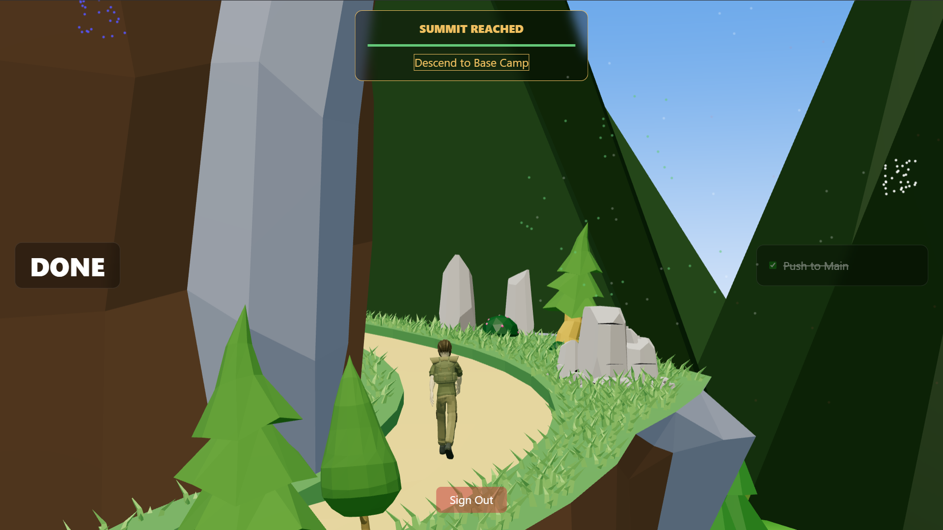 We built the website with a mixture of React, Vite and Three.js. The backend is supported by the open-source Supabase, and the 3D models were sourced from open licensed assets from itch.io, while the main mountain was built from scratch in Blender.